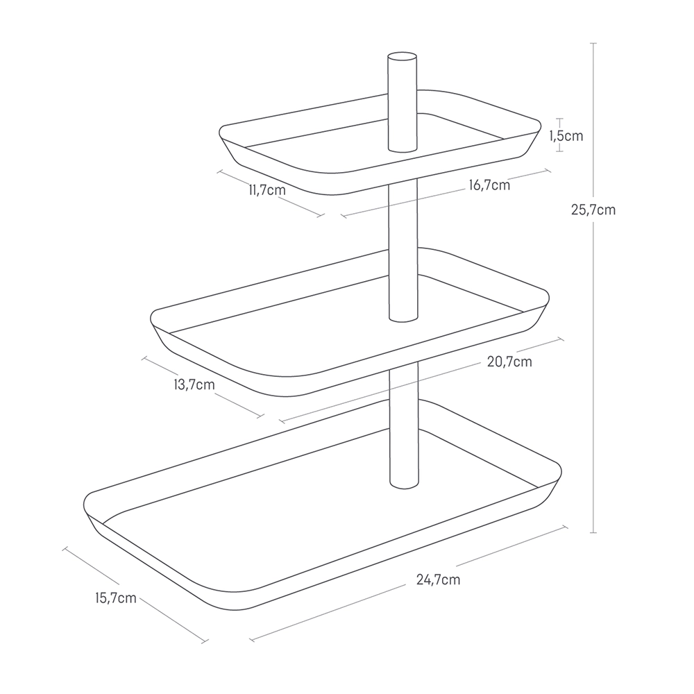 De sieradenschaal en etagère van Yamazaki met drie draaibare plateaus is een elegante en functionele oplossing voor het opbergen en uitstallen van je sieraden. Deze sieraden organizer biedt drie niveaus van opbergruimte, waarbij elk plateau volledig draaibaar is voor eenvoudige toegang en een stijlvolle presentatie van je accessoires.