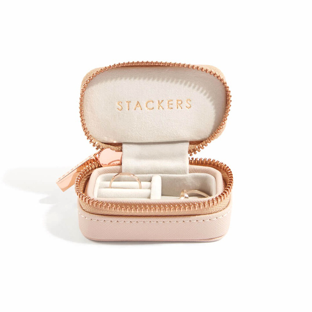 Klein sieradentasje van Stackers. In drie kleuren verkrijgbaar. Handig voor het opbergen van sieraden tijdens het sporten, of om mee te nemen op reis.