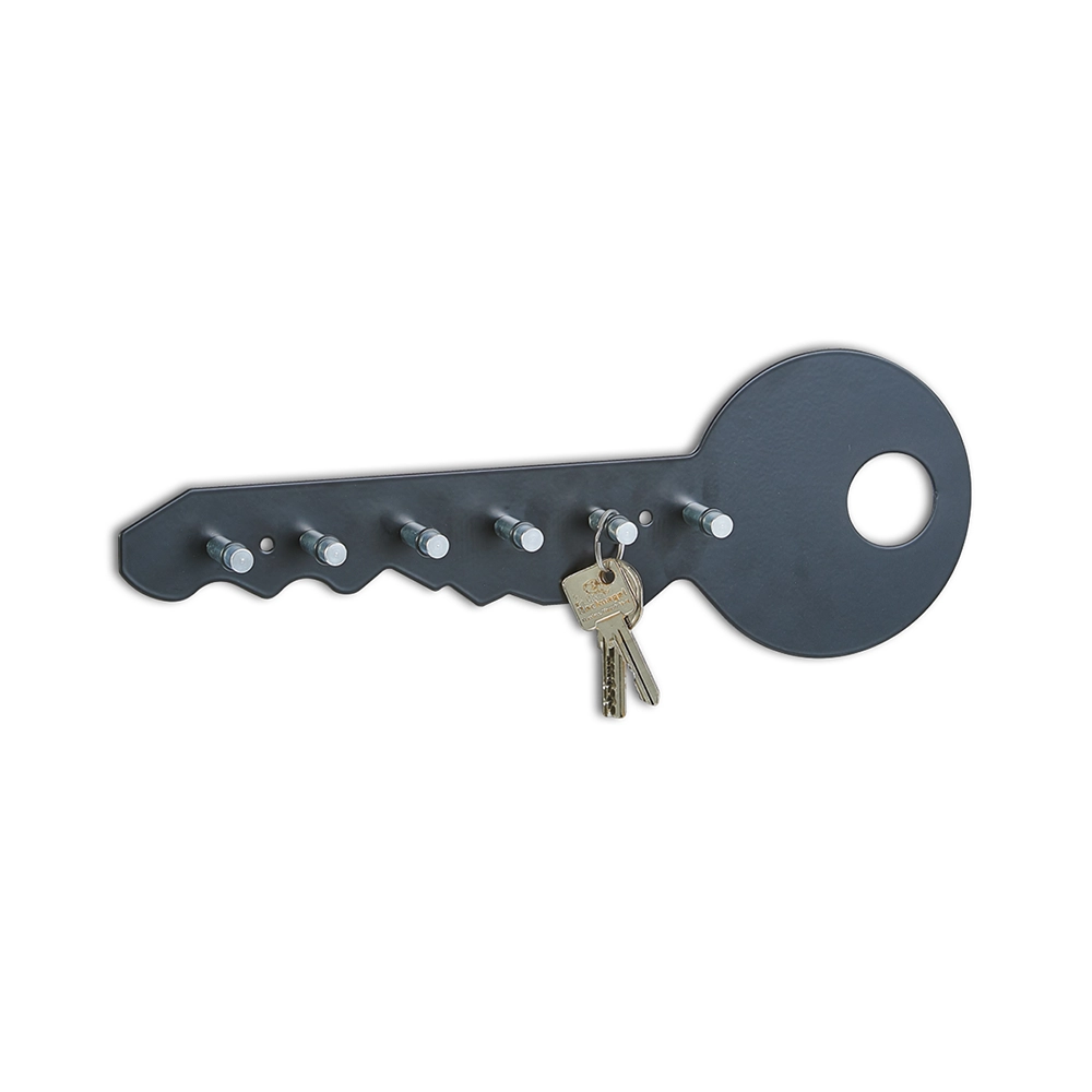 De zes aluminium haken, voorzien van zwarte rubberen ringen, houden sleutels stevig op hun plek, terwijl het gepoedercoate metalen bord een stijlvolle uitstraling heeft. Dit sleutelrekje is een must-have voor een georganiseerde hal of entree. Dit sleutelrekje is niet alleen functioneel, maar ook decoratief. Het bord heeft een speelse sleutelvorm, waardoor het een leuke toevoeging is aan je interieur. Dankzij het duurzame metalen ontwerp is het stevig en slijtvast. Met een breedte van 35 cm en een diepte van 4 cm neemt het weinig ruimte in beslag, terwijl het toch voldoende ophangmogelijkheden biedt. Het rekje is 35 cm breed, 4 cm diep en 12 cm hoog en wordt geleverd inclusief montagemateriaal.