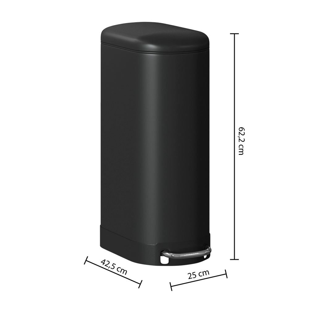 Met zijn slanke formaat is deze prullenbak ideaal voor beperkte ruimtes zonder concessies te doen aan de functionaliteit. Met afmetingen van slechts 25 cm breed, 42,5 cm diep en 62,2 cm hoog neemt deze smalle prullenbak weinig ruimte in beslag, maar biedt toch een royale inhoud van 30 liter. Perfect voor elk huishouden of kantoor!