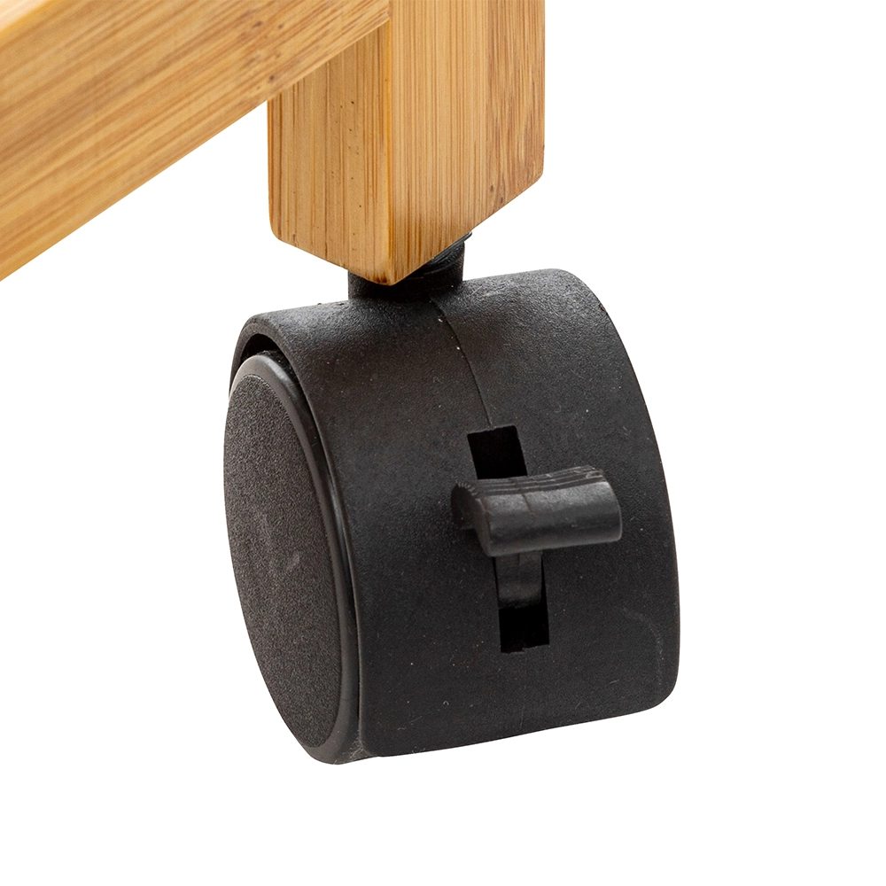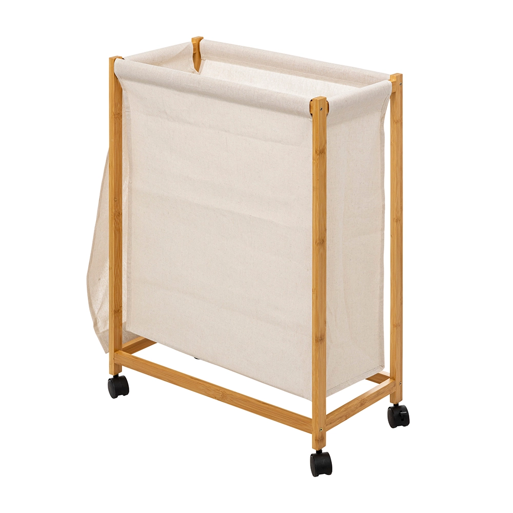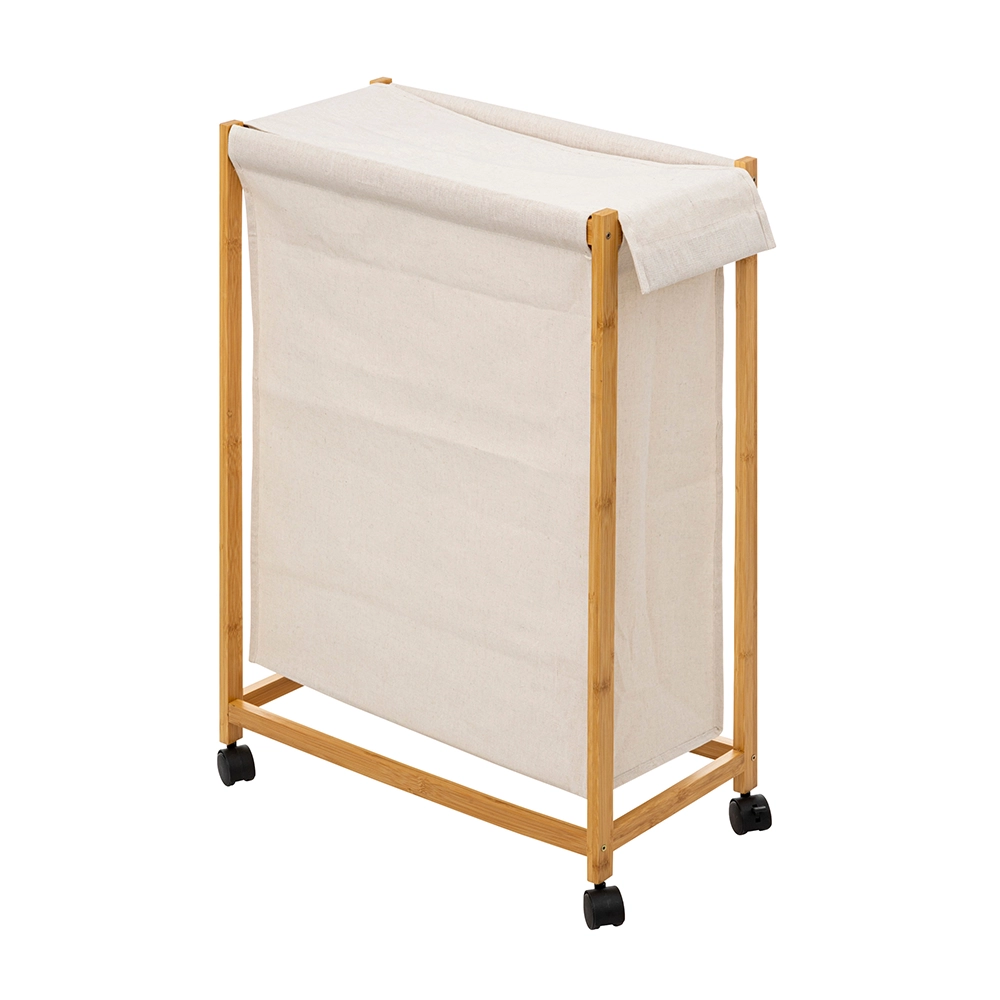 De smalle wasmand is niet alleen functioneel, maar ook stijlvol. Het bamboe frame geeft een natuurlijke en moderne uitstraling aan je interieur. De kunststof geremde zwenkwieltjes zorgen ervoor dat je de wasmand gemakkelijk kunt verplaatsen, zelfs als hij volgeladen is. En met de polyester afneembare waszak met deksel blijft je vuile was uit het zicht en behoud je een opgeruimde uitstraling.