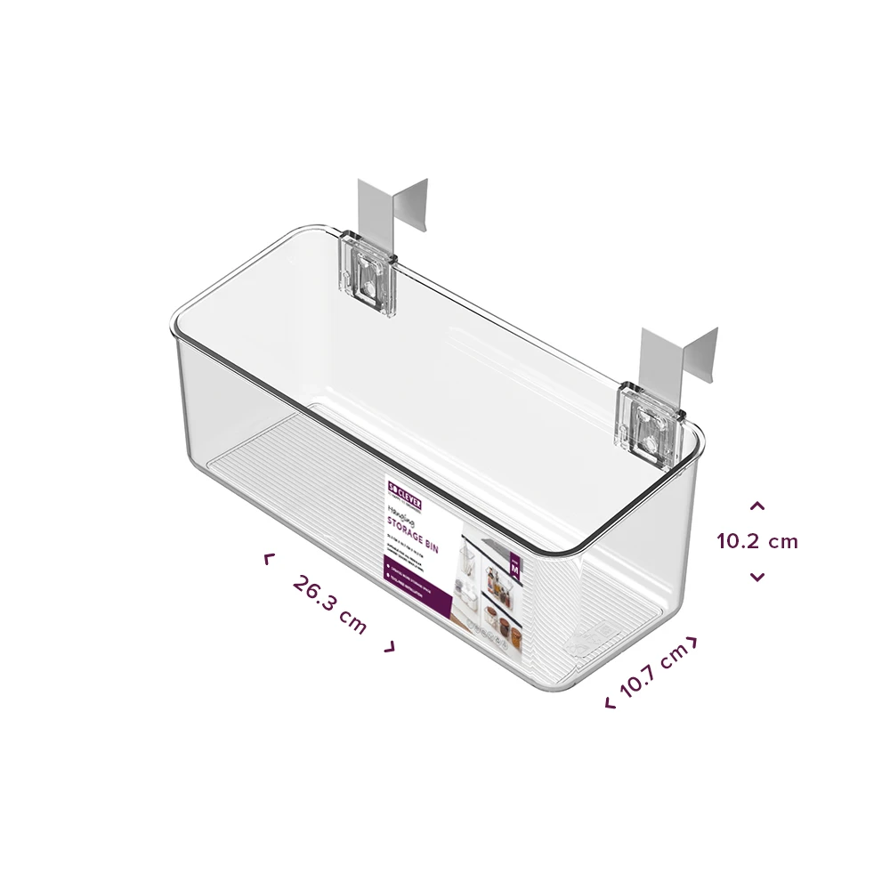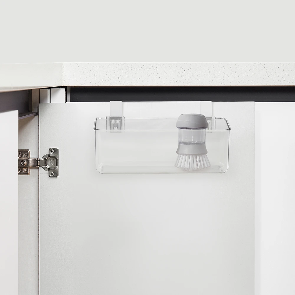 Ontdek het premium hangende opbergbakje met ophanghaken van So Clever. Hang het opbergbakje gemakkelijk op aan de binnenkant van je keukenkastje of wastafelmeubel, en dat zonder te boren.