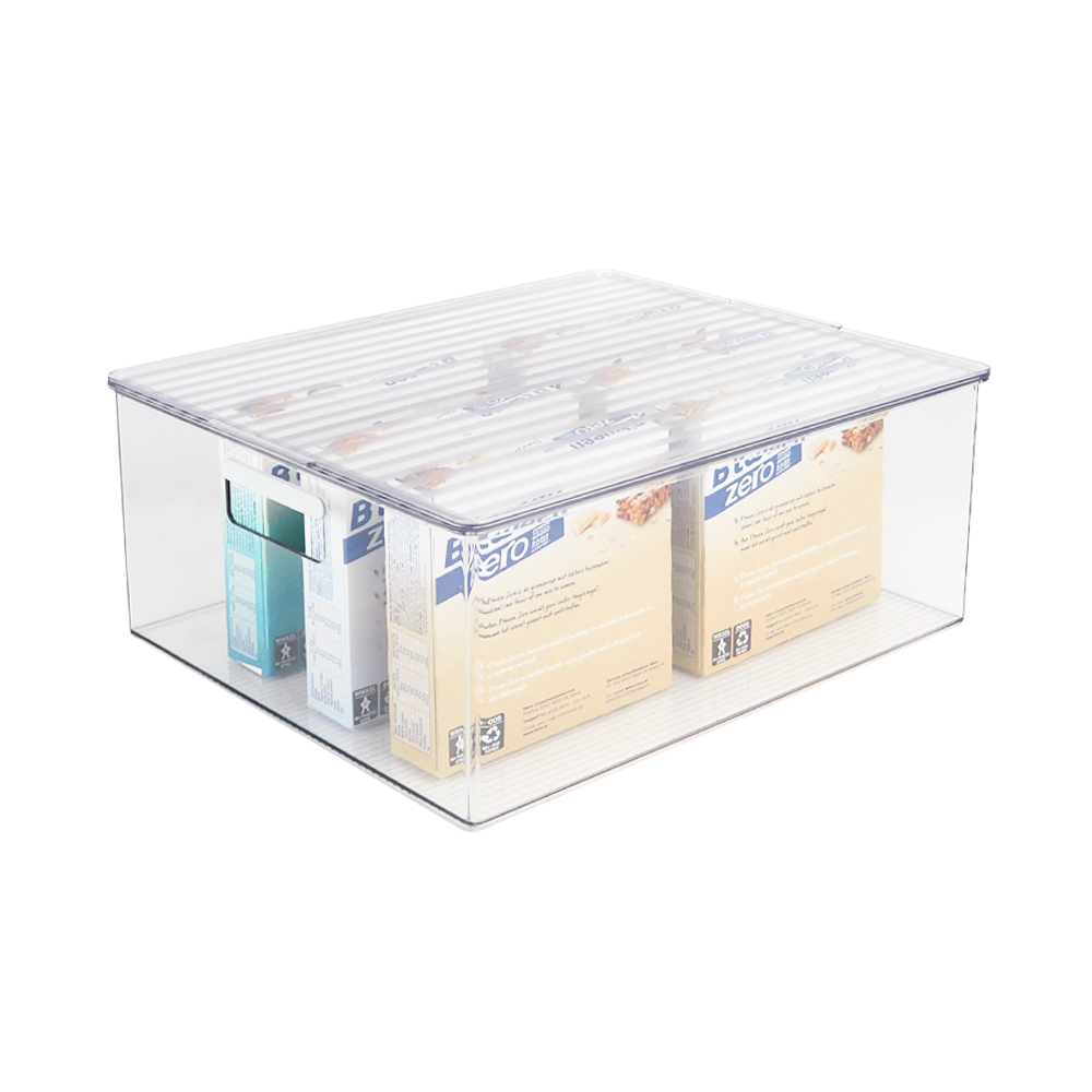 De multifunctionele So Clever opbergdoos is vervaardigd uit hoogwaardig PET-kunststof en is diepvriesbestendig en daarnaast volledig vrij van BPA, wat het voedselveilig maakt. Niettemin kan je deze So Clever opbergdoos ook goed gebruiken om bijvoorbeeld make-up of kantoorbenodigdheden netjes te organiseren. De transparante opbergdozen hebben lichtgrijze handvaten met het gegraveerde So Clever logo erin, dit geeft de bakken een échte luxe uitstraling. Met de keuze om het deksel te gebruiken of weg te laten, is deze opbergdoos uiterst veelzijdig. De opbergdozen zijn prachtig te combineren met elkaar of met de voorraaddozen binnen deze Multi Storage Bin reeks. Stapelen is mogelijk zonder deksel, echter vereist de hoogste variant wel een deksel om te kunnen stapelen. Handwas wordt aanbevolen, aangezien het niet vaatwasserbestendig is. Geniet bovendien van een garantie van 12 maanden. Kies uit 6 verschillende formaten, waarvan 3 met deksel: