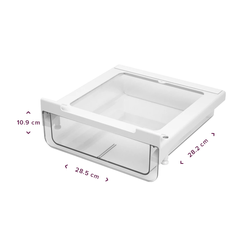 Deze kwalitatieve opberglade bestaat uit wit en transparant kunststof en is gemakkelijk op te hangen aan jouw keukenkast plank. Wanneer uitgeschoven, hangt de opberglade tot 30 graden naar beneden waarmee jij gemakkelijk toegang hebt tot de inhoud. De opberglade is uiterst handig voor het opbergen van verschillende items. Zo kan je er kruidenzakjes of bestek in kwijt. Uiteraard kan je de opberglade ook in badkamers toepassen om bijvoorbeeld medicijnen op te bergen. De installatie is een fluitje van een cent. Schroeven en gereedschap zijn overbodig; klem simpelweg de twee clipjes aan de voorzijde om de plank heen en kleef de strip aan de achterkant vast aan de onderkant van de plank. Indien je spullen van meer dan 1 kg wilt opbergen, dan raden we je wel aan om de achterzijde met het meegeleverde schroefje te bevestigen aan de plank. De opberglade past op standaard keukenkastplanken met een maximale dikte van ca. 2 cm. In de doos vind je een handleiding met installatie instructies. Wil je de lade graag schoonmaken? Dat kan! Je neemt de lade er gemakkelijk uit in zijn geheel. Je hebt de keuze uit 2 verschillende varianten van opberglades: mét of zonder sorteervakken. De opberglade met sorteervakken heeft een uitneembare inzet met 8 vakken. Deze zijn handig om bijvoorbeeld verschillende soorten thee of medicijnen te organiseren. De opberglade is 28.2 cm breed, 28.5 cm diep en 10.9 cm hoog.