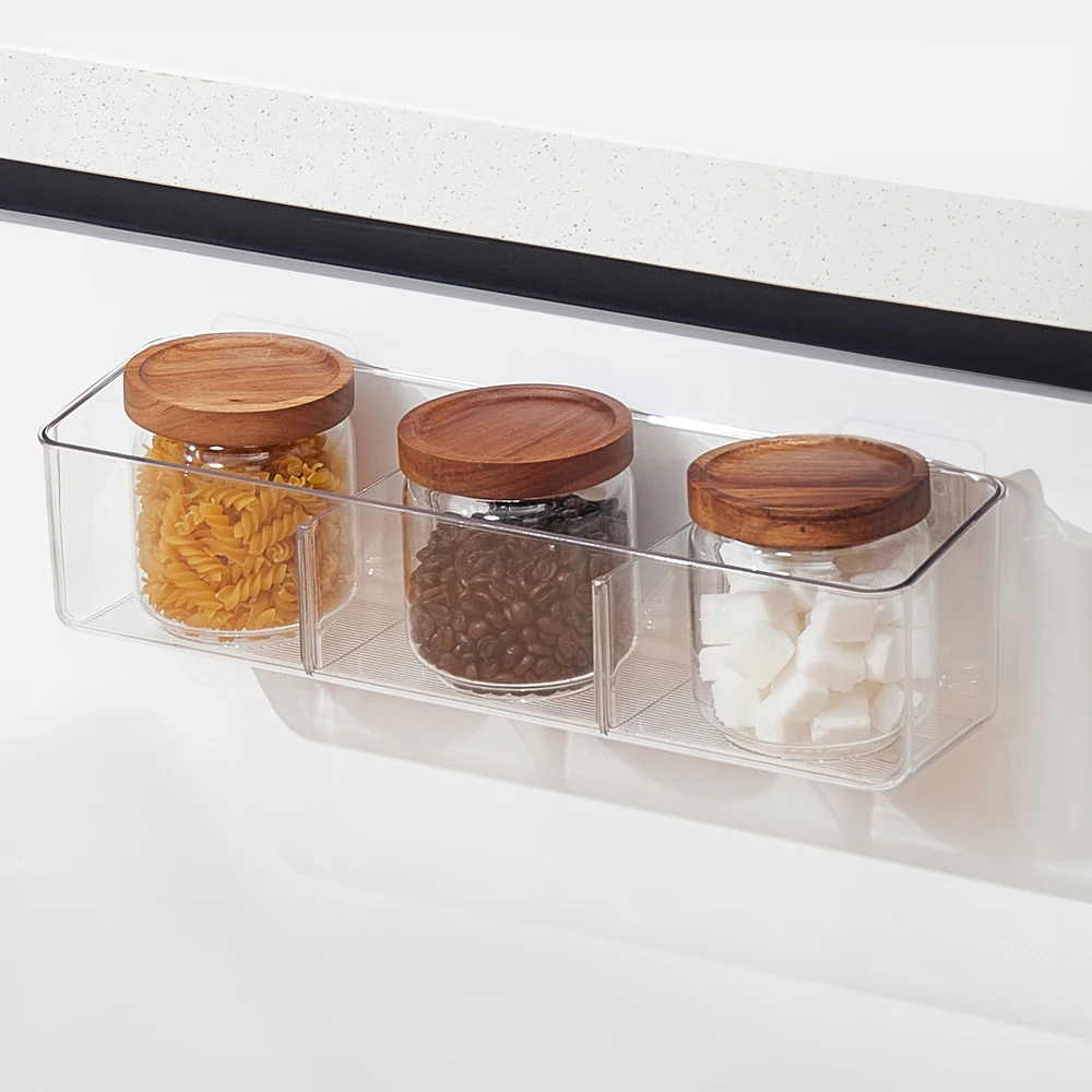 Ontdek het hangende opbergbakje met zelfklevende pads van So Clever. Dit zelfklevend bakje is de ideale wandorganizer voor binnenin een keukenkastje of wastafelmeubel. Gemakkelijk te monteren aan de binnenkant van je kastdeur, en dat zonder te boren.