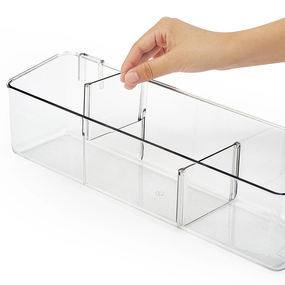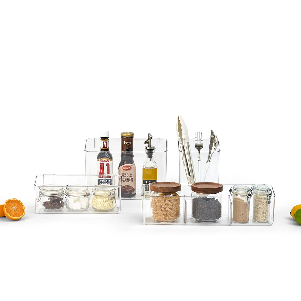 Het opbergbakje bestaat uit zeer transparant PET-kunststof en is BPA-vrij. Deze organizer biedt extra opbergruimte binnenin kasten waardoor het ideaal is voor verschillende toepassingen. Zo kan je het bijvoorbeeld gebruiken in je gootsteenkastje voor schoonmaakspullen, in je keukenkast voor kruiden maar ook zelfs in je badkamerkast voor verzorgingsproducten. Dankzij hun neutrale maar ook kwalitatieve uiterlijk, hebben de opbergbakjes een luxueuze uitstraling. Aan de achterzijde bevindt zich een plakstrip met zeer hoge kleefkracht, waardoor boren in je kastje overbodig is. Kies voor dit bakje met plakstrip of ga voor de variant met ophanghaken die je hangt over de binnenkant van je kastdeur. Nog beter is als je beiden opties combineert, zo benut je pas écht optimaal je kastruimte. Let op: dit product is niet vaatwasserbestendig. Ook geldt er een garantie van maarliefst 12 maanden. Je hebt de keuze uit 4 verschillende formaten, waarvan 2 met een hogere rand. Formaat L beschikt hierbij ook over 2 handige uitneembare verdelers. Zo bepaal jij zelf de grootte en/of indeling van de vakken.