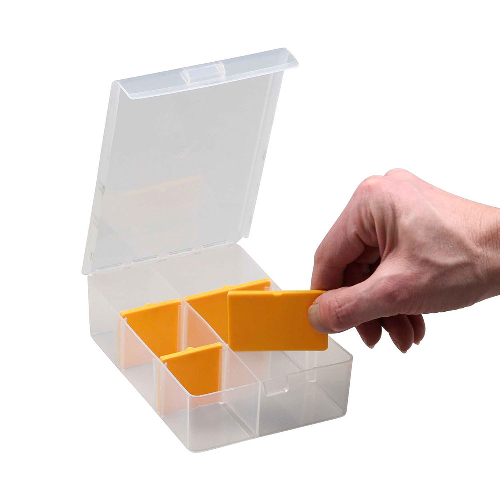De sorteerbakken van Allit zijn gemaakt van polypropyleen kunststof en zijn allemaal transparant. Hierdoor zie je exact wat er in de sorteerbak is opgeslagen. Met het deksel sluit je de assortimentsdozen stevig af. De gele verdelers zijn uitneembaar waardoor je grote en kleine sorteervakken kunt creëren. De sorteerbakken kunnen goed voor klein gereedschap zoals schroefjes gebruikt worden, maar ook hobbyspullen zoals legoblokjes en knutselartikelen, zoals kraaltjes, kunnen hierin een overzichtelijke plek krijgen.