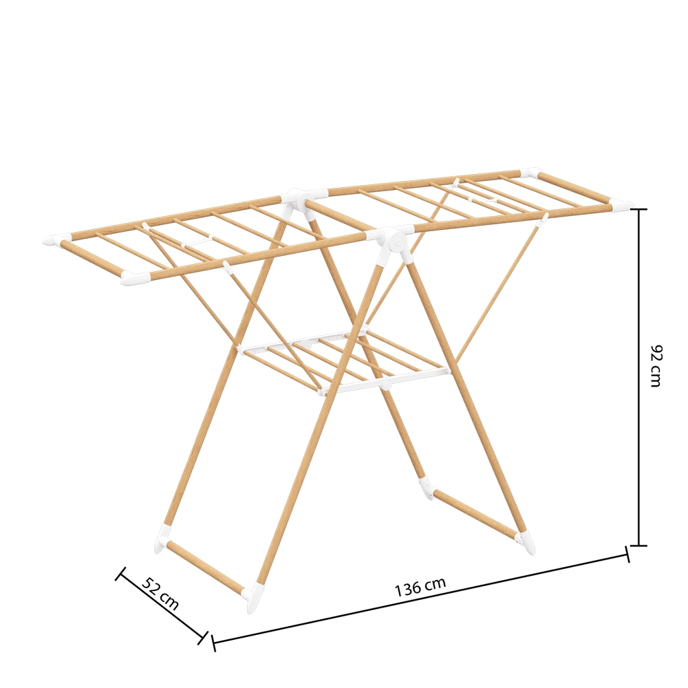 Het droogrek met houtlook combineert een stijlvolle uitstraling met praktische functionaliteit, waardoor het een ideale keuze is voor het drogen van je wasgoed. Dit droogrek biedt een droogoppervlak van maar liefst 20 meter.