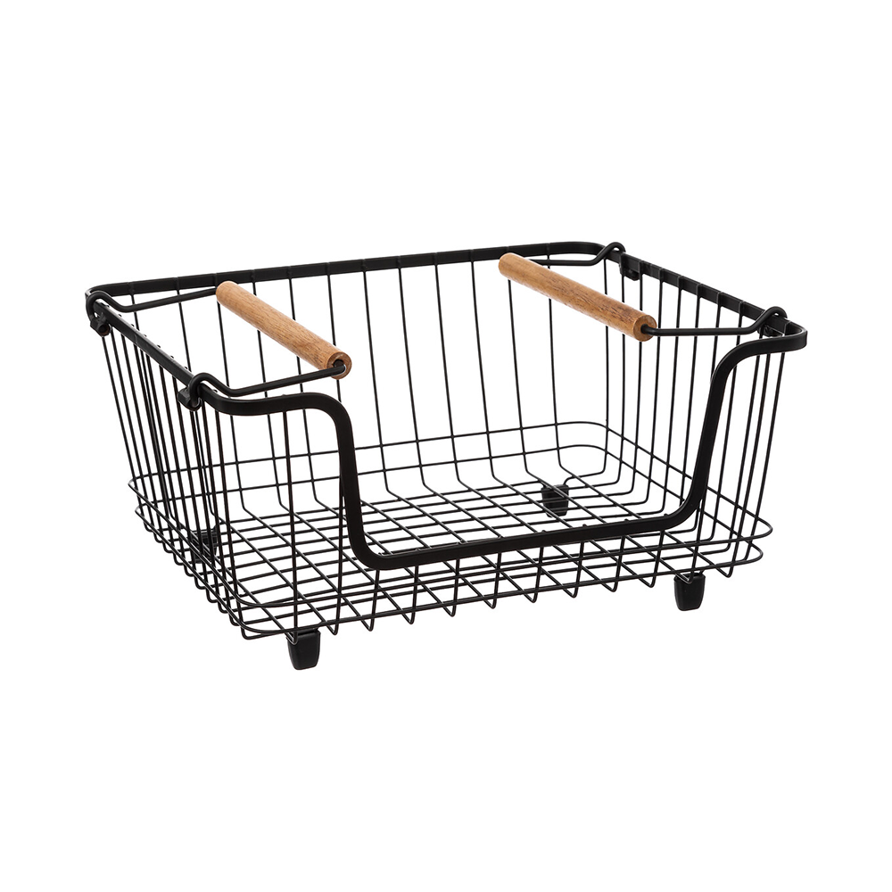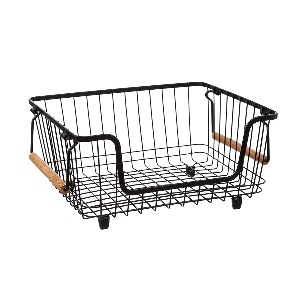 Vanwege het slimme ontwerp zijn de manden zowel nestbaar als stapelbaar. Wanneer de hendels worden ingeklapt kun je de manden op elkaar stapelen waardoor je waardevolle ruimte in je bijkeuken of in je voorraadkast bespaart. Nooit meer je groentes rondslingerend in je voorraadkast - met onze stalen opbergmanden blijft alles netjes en overzichtelijk. Beschikbaar in twee formaten, waarbij beide varianten ook stapelbaar zijn op elkaar: