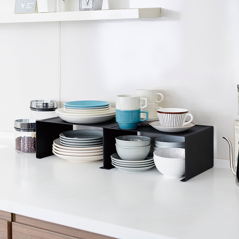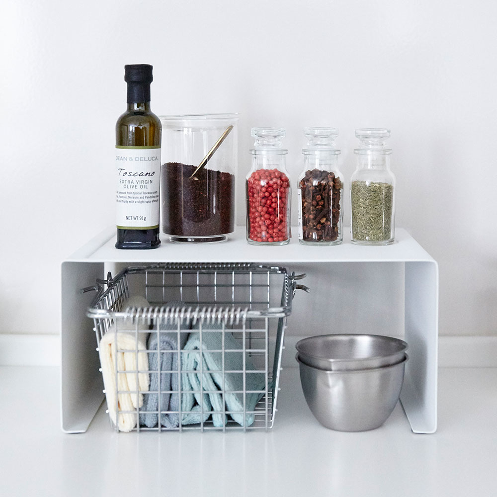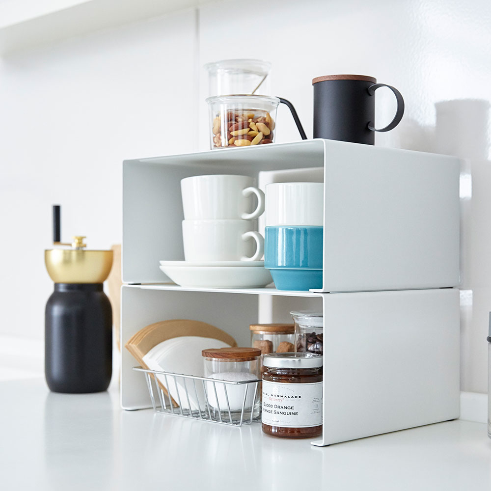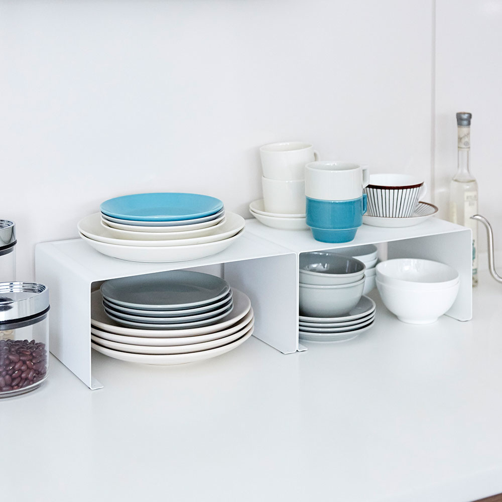 Dit metalen rekje voor in de keuken is ideaal te gebruiken op het aanrecht maar ook in de keukenkast. De maximale stapelhoogte is twee metalen rekjes op elkaar. Zorg voor extra ruimte op het aanrecht of creëer een extra plank. Dit metalen rekje is geschikt voor servies opbergen, borden stapelen of potjes bewaren. Door het moderne design past dit metalen rekje keuken van Yamazaki mooi bij elk interieur.