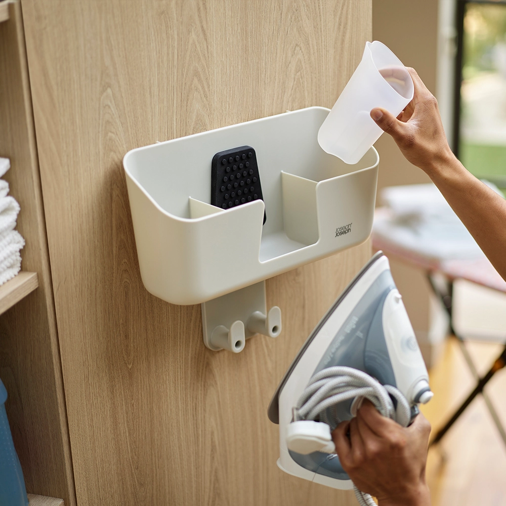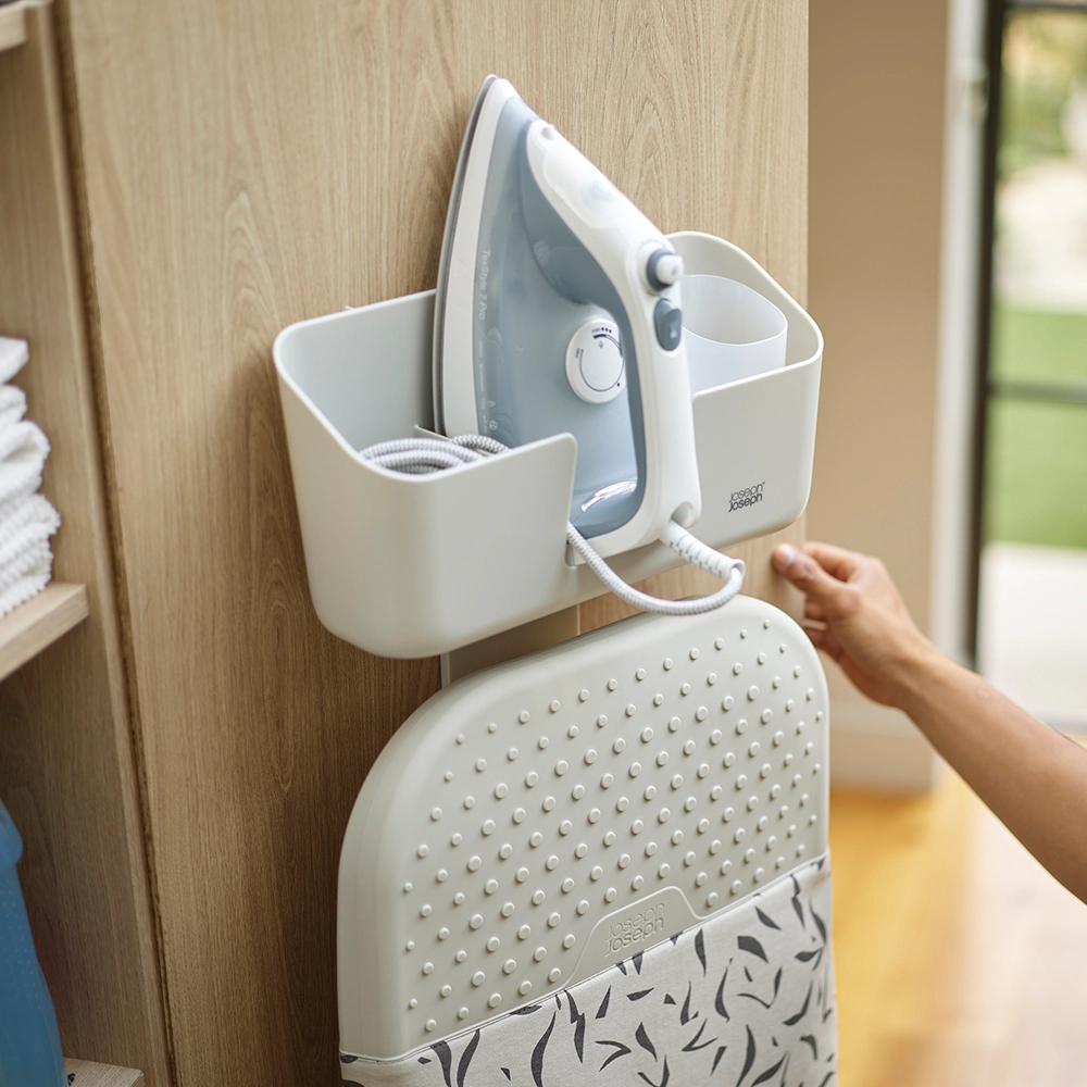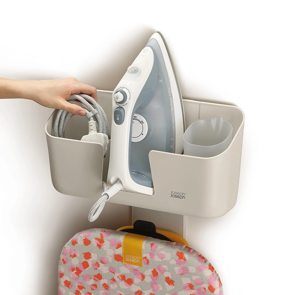De strijkijzer opberger van Joseph Joseph biedt een slimme en stijlvolle oplossing om je strijkijzer, strijkplank en accessoires netjes en georganiseerd te houden. Met een universele strijkplankhaak, hittebestendige siliconen strijkpad en handige opbergruimte voor een waterkan en kabels, is deze caddy ontworpen om je strijkkamer overzichtelijk en functioneel te maken.