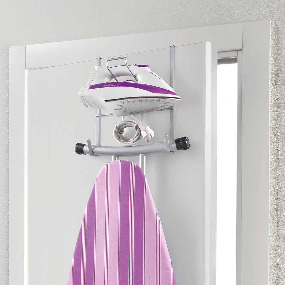 Naast een strijkplank ophangen aan een deur kun je ook een strijkijzer opbergen aan een deur. Deze strijksethouder van Metaltex zorgt ervoor dat je alle benodigdheden snel bij de hand hebt en beide spullen op een veilige plek worden opgeborgen. Omdat je de strijkplank gaat ophangen aan de deur bespaar je ook nog eens ruimte in je misschien al kleine en rommelige washok.