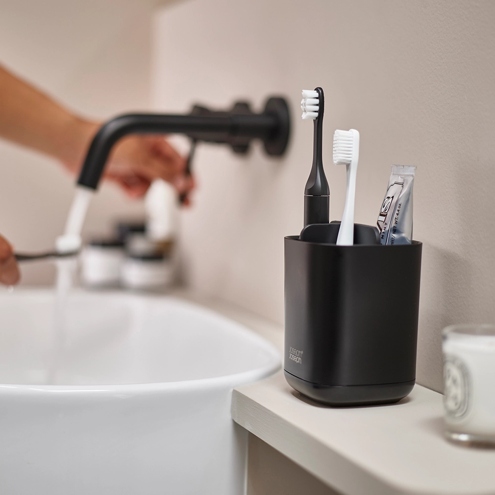 Het tandenborstel bakje van Joseph Joseph is ontworpen met aandacht voor detail en gebruiksgemak. De verschillende secties zorgen voor een overzichtelijke opbergplek voor al je mondzorgbenodigdheden, terwijl het stijlvolle design perfect aansluit bij moderne badkamertrends. Of je nu een tandenborstelbeker zoekt voor je elektrische tandenborstel of ruimte nodig hebt voor meerdere items, dit bakje biedt een elegante oplossing.
