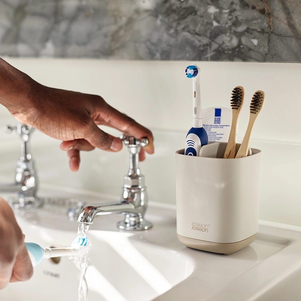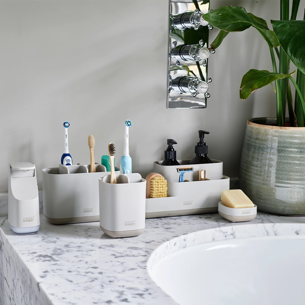Houd je badkamer netjes en georganiseerd met de tandenborstelhouder van Joseph Joseph, onderdeel van de EasyStore serie. Deze slimme en stijlvolle tandenborstelhouder biedt een ideale oplossing om je tandenborstels en andere badkamerartikelen overzichtelijk op te bergen.