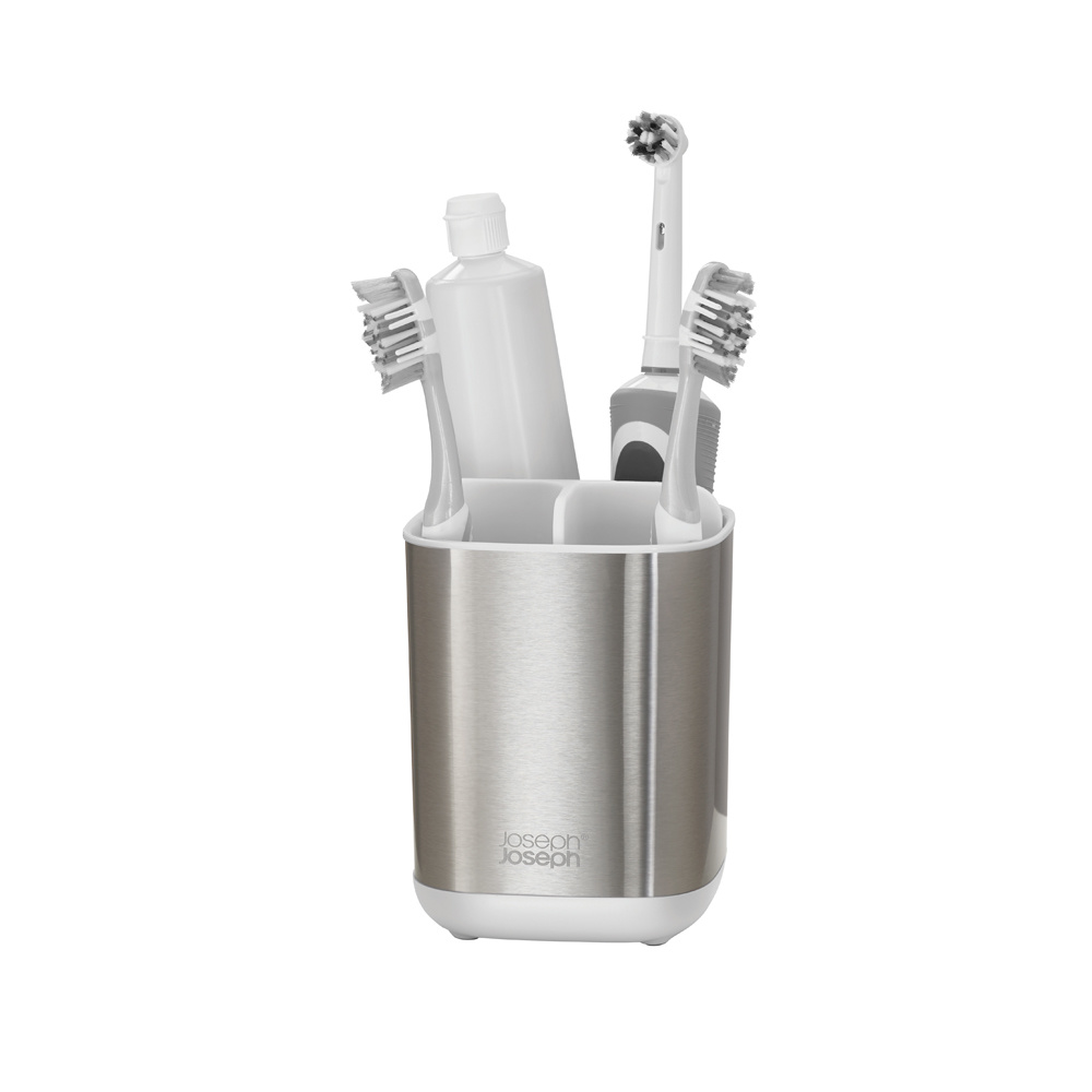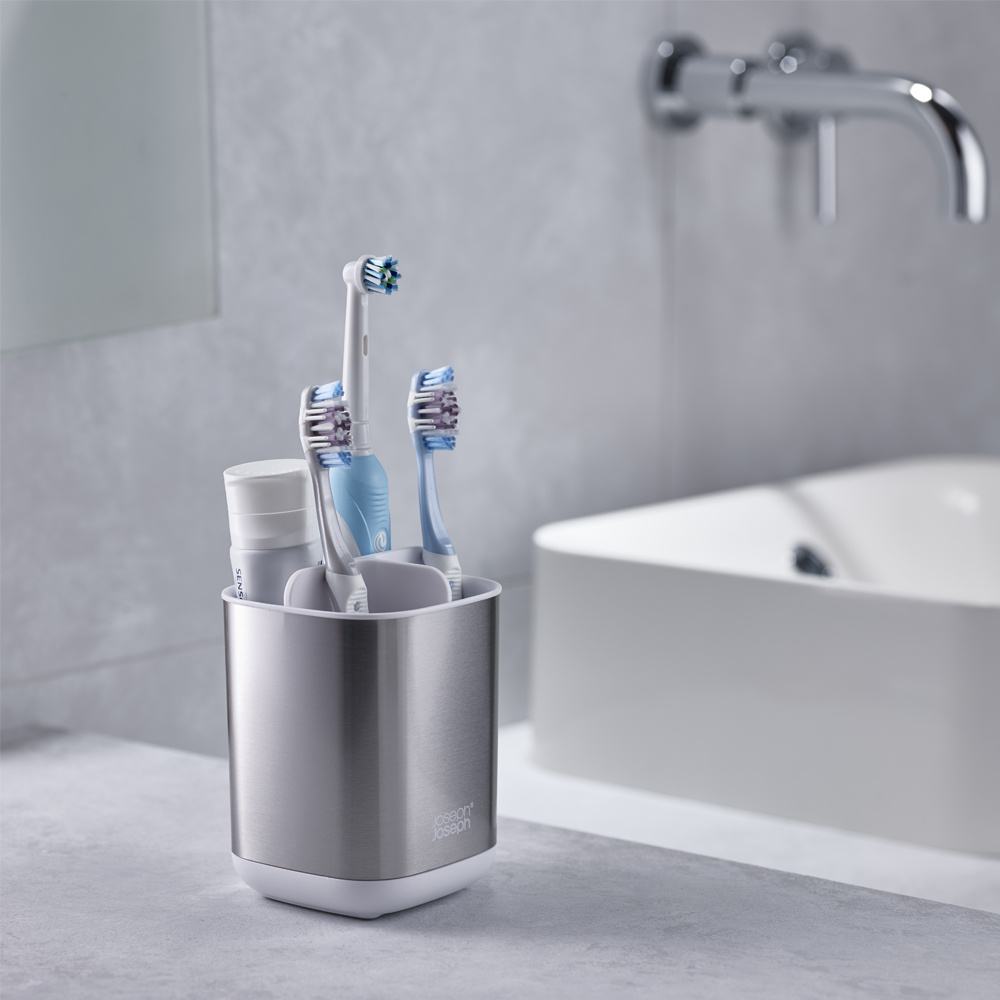 Naast je handtandenborstel passen ook elektrische tandenborstels en andere badkameraccessoires in de opberger. Zet het tandenborstel bakje neer op je wastafel of zet hem uit het zicht in een van je badkamerkastjes. De houder is makkelijk uit elkaar te halen zodat het bakje goed schoongemaakt kan worden. Ook is er een ventilatiegat aanwezig waardoor de houder snel opdroogt als er waterresten van de tandenborstels afkomen. Vanaf nu kunnen je badkameraccessoires schoon en gestructureerd opgeborgen worden! Maak je set compleet met andere badkamer opbergers uit de EasyStore collectie van Joseph Joseph.
