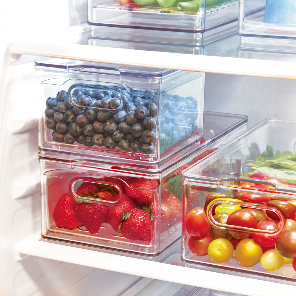 De transparante koelkastdozen zijn gemaakt van duurzaam Resipreme-kunststof. De koelkast bakken zijn eenvoudig stapelbaar, met én zonder deksel. Ook zijn de bakken te stapelen op andere bakken van The Home Edit. Fruit bewaren wordt makkelijker door de uitneembare bakken. De koelkast bakken zijn niet vaatwasserbestendig. De bakken zijn BPA vrij. De afmetingen van de koelkast bakken zijn als volgt: