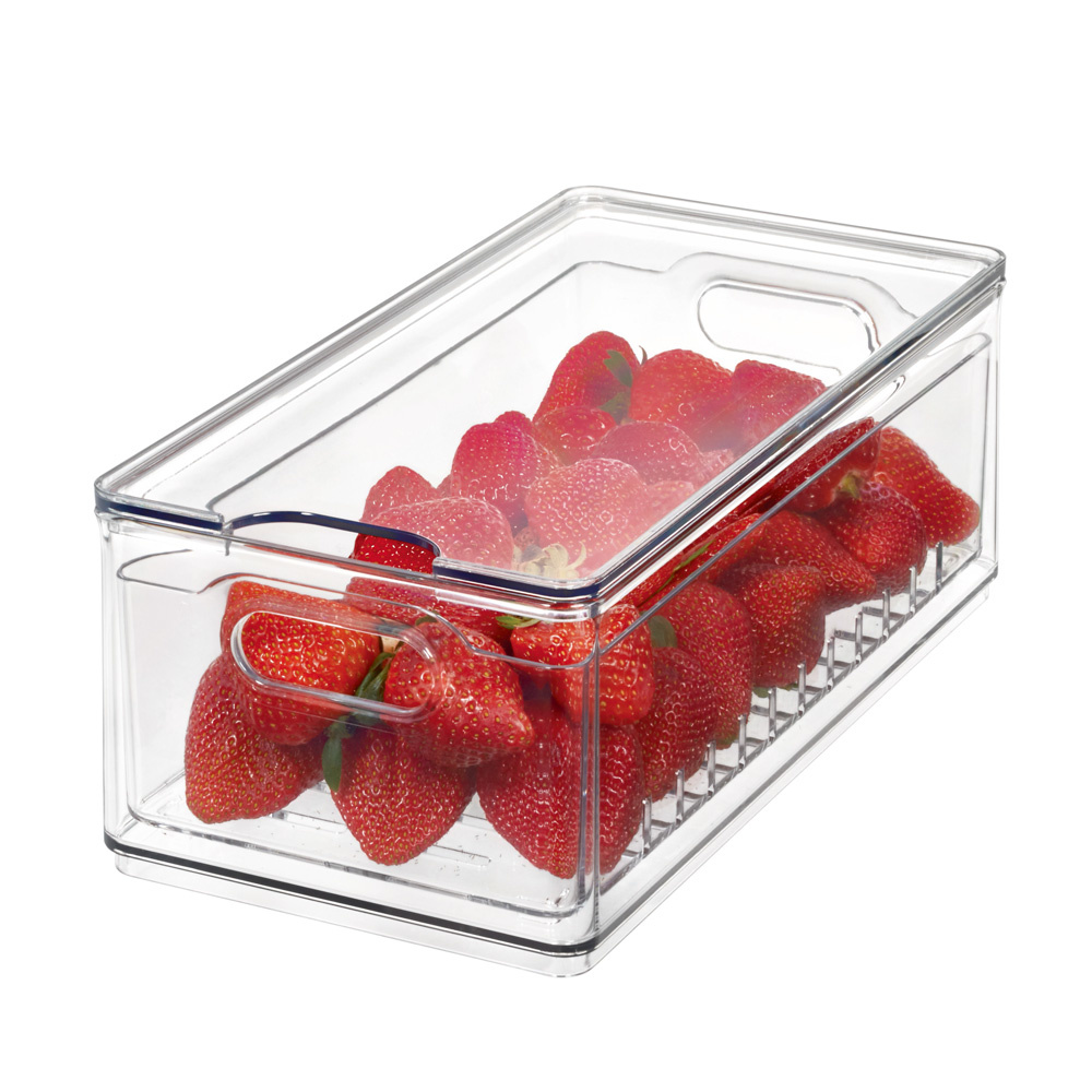 Met de koelkast bakken voor fruit van The Home Edit berg jij je fruit gemakkelijk en hygiënisch op. De koelkast bakken hebben uitneembare opvangbakjes met gaten. Hiermee houd je het vocht gescheiden van het fruit, waardoor het langer vers blijft.