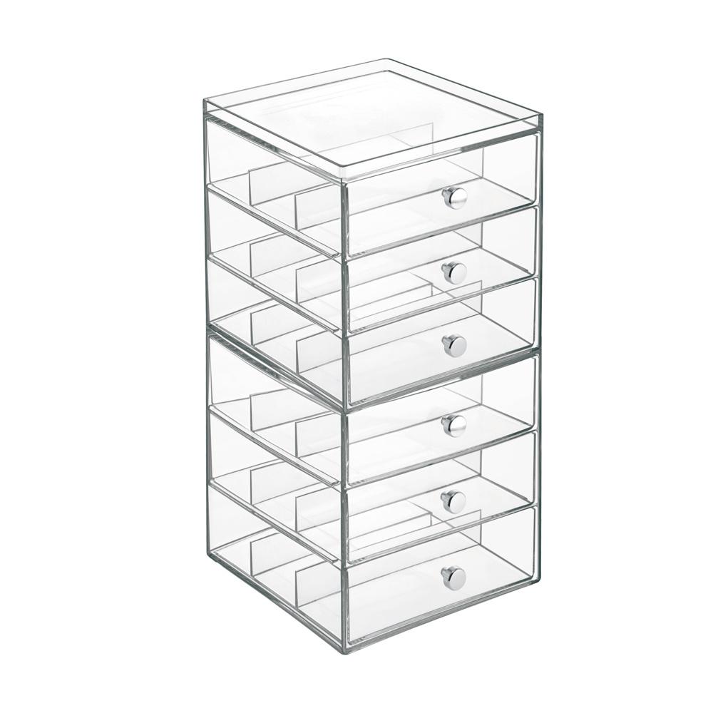 Dit transparant doosje met lades van iDesign kan voor het opbergen van allerlei accessoires dienen. Zoals, make-up, brillen, sieraden of knutselspullen. Het product is stapelbaar, maar je kunt natuurlijk ook de bovenkant als extra opbergplateau gebruiken. Keuze uit verschillende varianten.