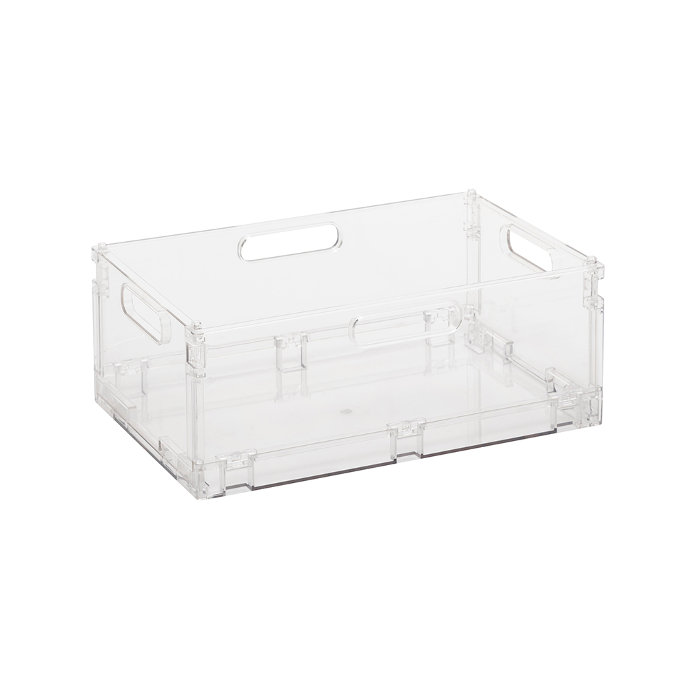 Het transparante kratje van Five® is een stijlvolle en praktische opbergoplossing voor in huis, op kantoor of in de badkamer. Dit transparante, inklapbare kratje is gemaakt van hoogwaardig kunststof en combineert functionaliteit met een strak design.