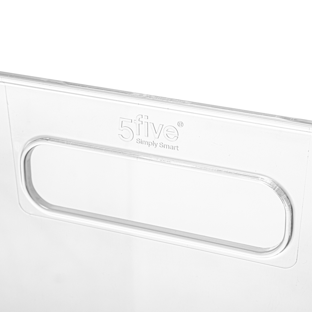 Met een transparante opbergbox kun je ontzettend veel. Door het design passen de opbergbakken van Five sowieso in elk interieur. En met de handvatten aan weerszijde kun je de doorzichtige opbergbox gemakkelijk uit kasten pakken en verplaatsen. Deze transparante opbergbox is onder andere perfect voor in de badkamer. Stop toiletrollen, handdoeken en schoonmaakmiddelen in de grote opbergbox. Maar de kleinere varianten van de transparante opbergbox is weer mooi voor cosmetica zoals haarkammen of diverse crèmepjes. In de Selena collectie van Five® kun je verder zoeken naar bijpassende transparante organizers voor in de badkamer.