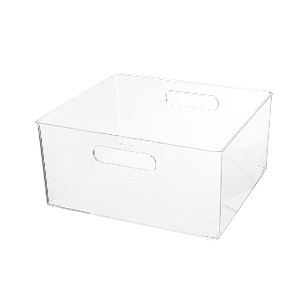 Praktische transparante opbergbak, handig voor in de badkamer om cosmetica, handdoeken en toiletrollen in op te bergen.