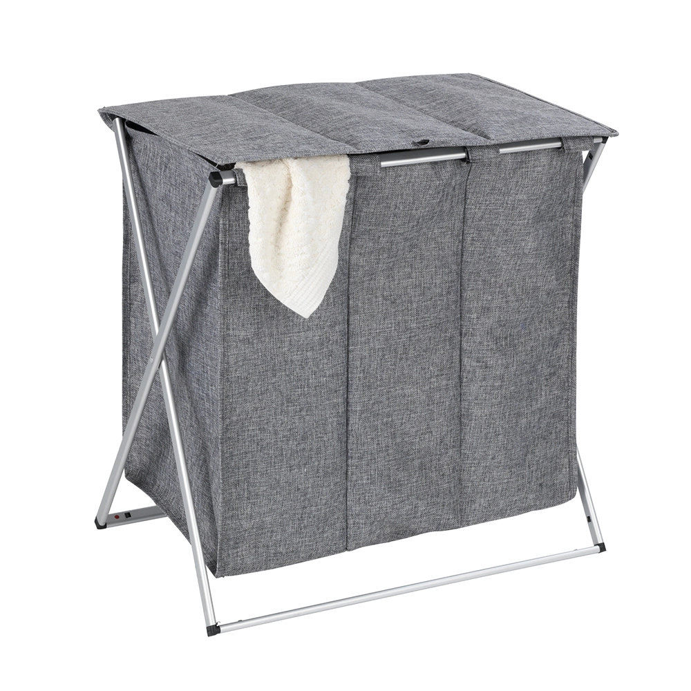 Gemaakt van hoogwaardig en duurzaam polyesterweefsel, is deze wasmand altijd een blikvanger in de badkamer, slaapkamer of wasruimte. De wasmand is 57 cm breed, 38 cm diep en 57 cm hoog. De trio wasmand is niet alleen decoratief, maar ook zeer praktisch vanwege de drie aparte vakken waarin je je was vooraf kunt scheiden op basis van kleur of temperatuur. Zo blijft je was georganiseerd en kun je efficiënter wassen.