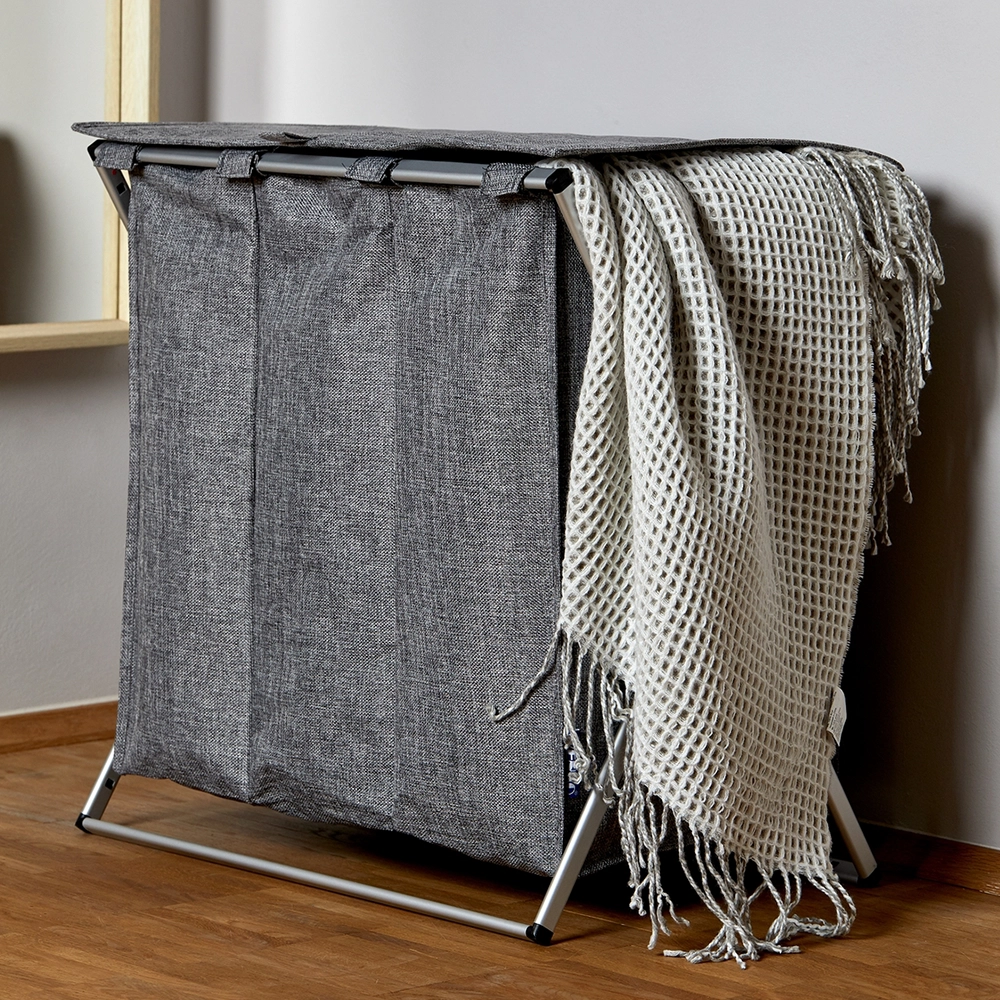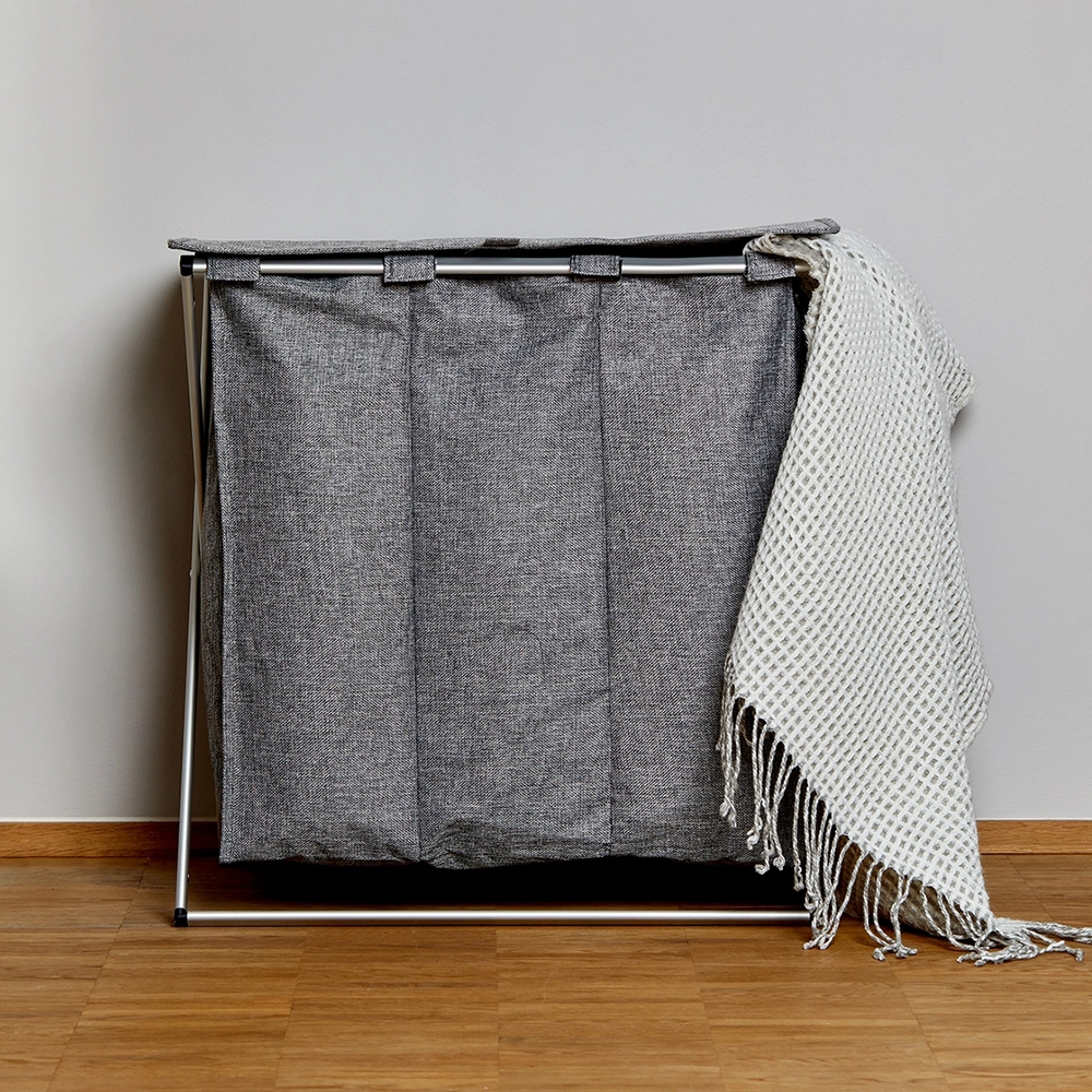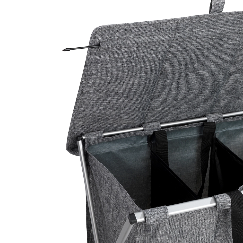 De moderne trio wasmand Tis niet alleen een lust voor het oog, maar heeft ook een indrukwekkende capaciteit van maar liefst 118 liter. Met zijn trendy grijze gemêleerde kleur voegt de rechthoekige wasmand een vleugje stijl toe aan elk huishouden.