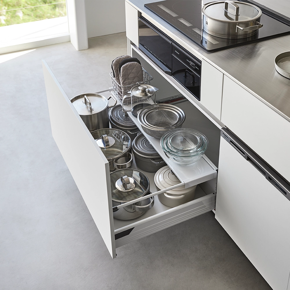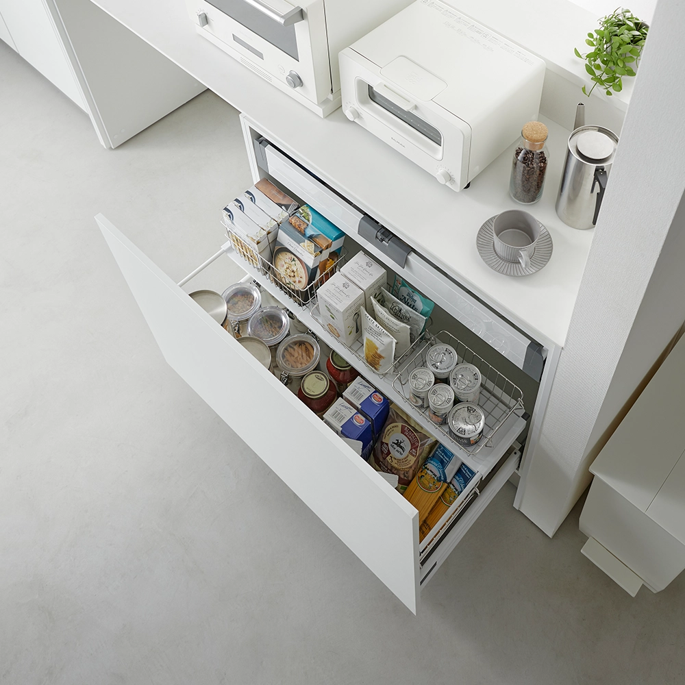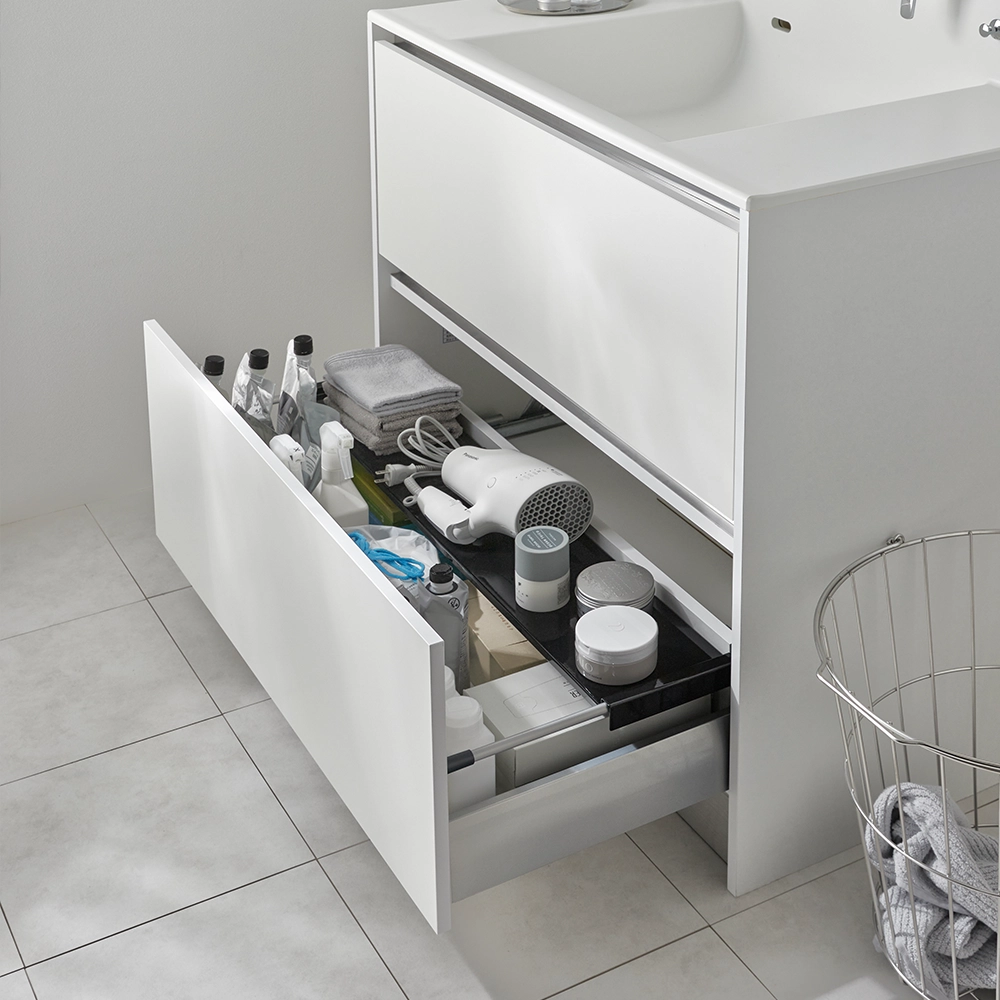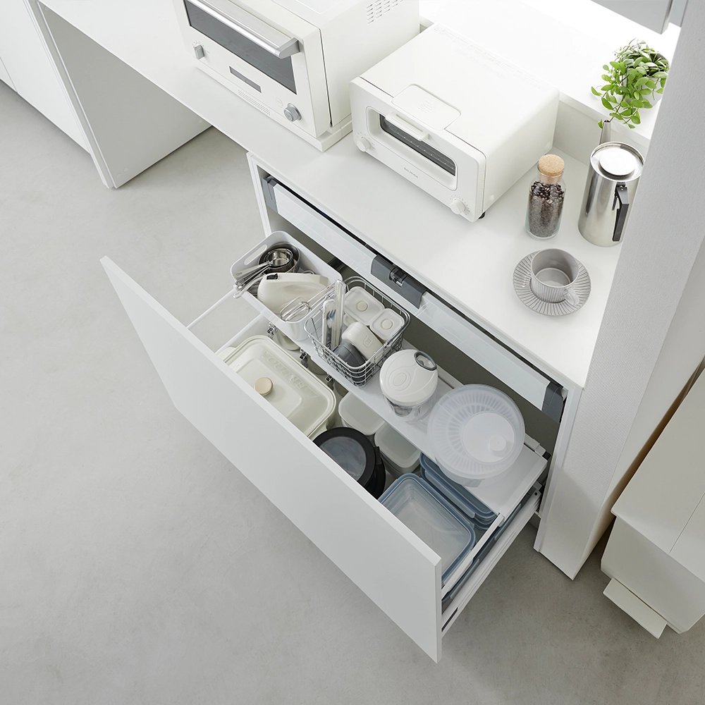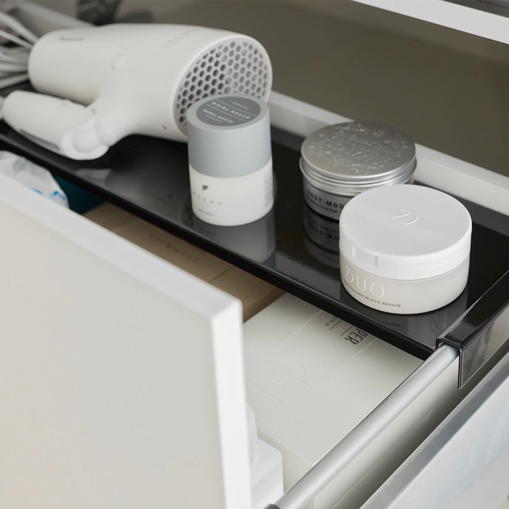 De ladeplank van Yamazaki is de ideale oplossing om extra opbergruimte te creëren in je diepe lades. Deze uitschuifbare plank biedt een tweede opbergniveau, waardoor je efficiënter gebruik kunt maken van de ruimte in je keukenlades, badkamer of wasruimte.