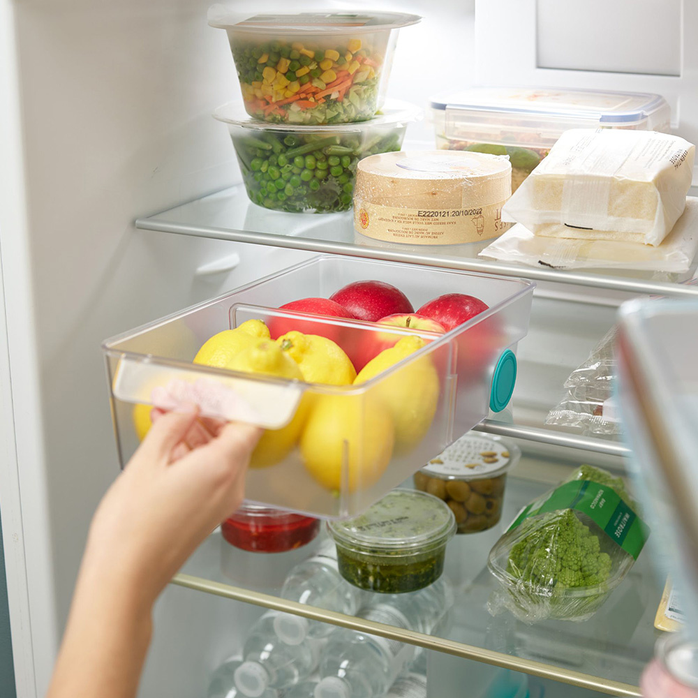 Hoe kan ik het beste eten in mijn koelkast sorteren? Met deze uittrekbare koelkastbak uit de FridgeStore collectie van Joseph Joseph heeft alles zijn eigen plek. Je kunt de bak eenvoudig naar voren trekken en terugduwen, en de wielen zorgen voor een soepele beweging. Voeg extra opbergruimte toe aan je koelkast met de uittrekbare koelkastbak op wieltjes!