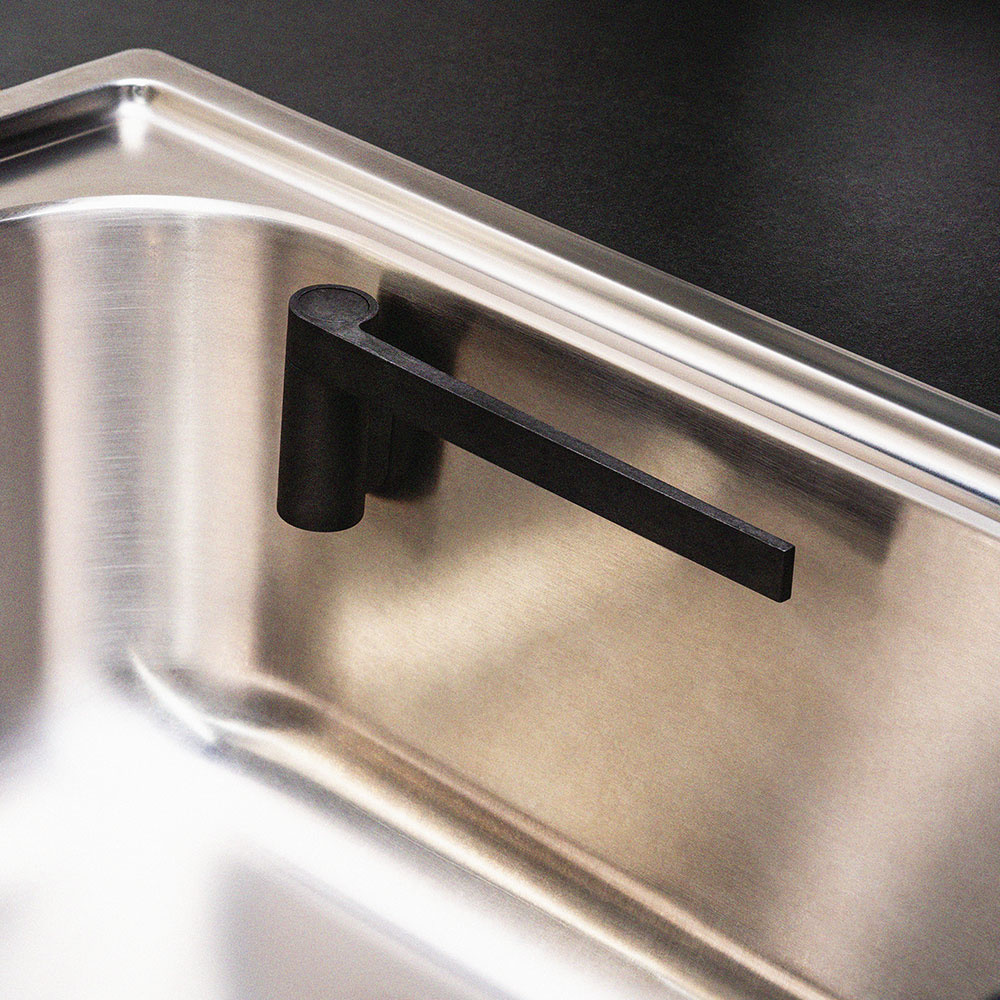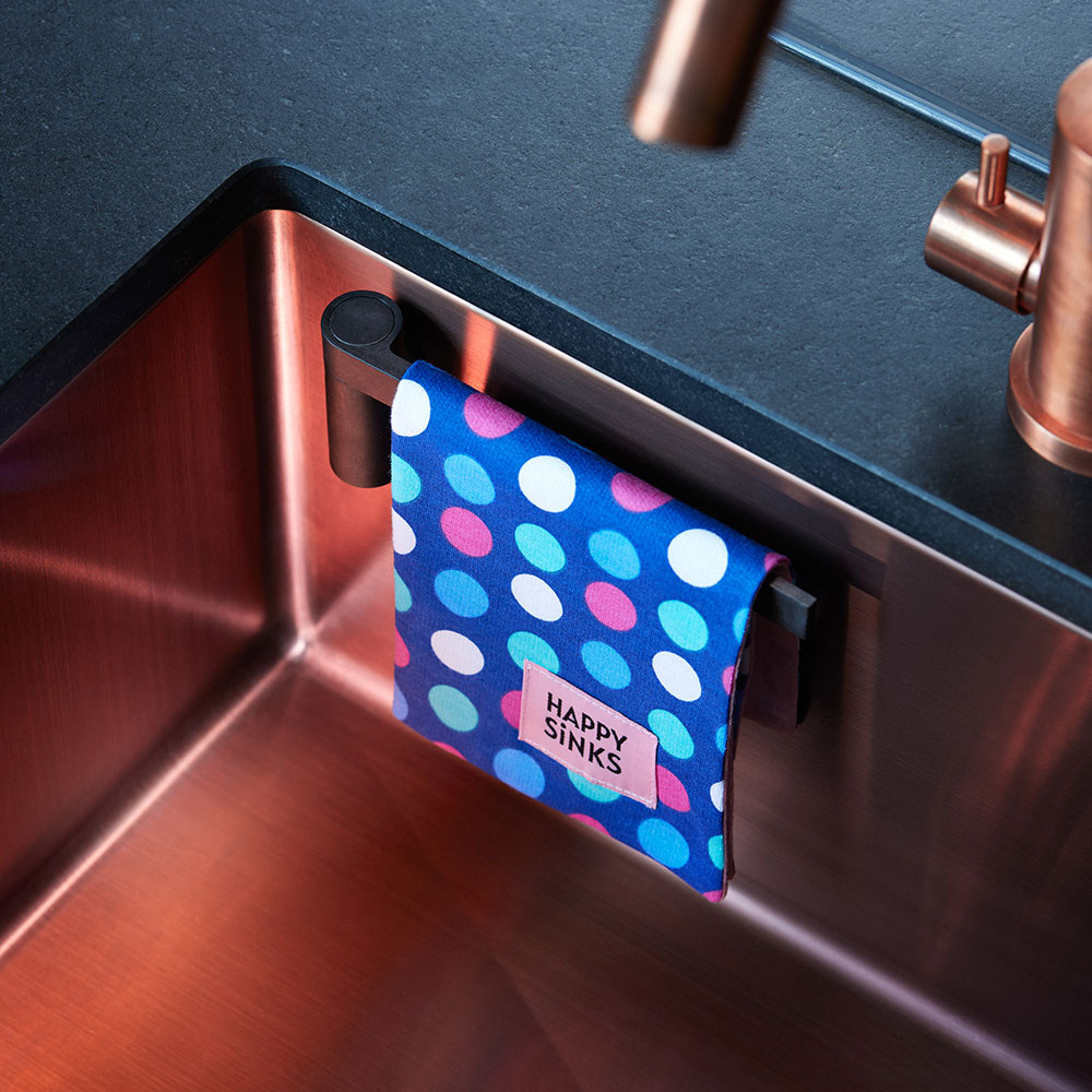 Deze vaatdoekhouder van Happy Sinks is gemaakt van bio composiet en is hierdoor een duurzame optie voor in bijna alle spoelbakken. De houder is beschikbaar in een zwarte kleur en heeft de volgende afmetingen: 17cm breed, 5,7cm diep, 2cm hoog. De zwarte houder kan geplaatst worden in een normale roestvrijstalen spoelbak, maar is niet geschikt voor composiet en stenen spoelbakken.
