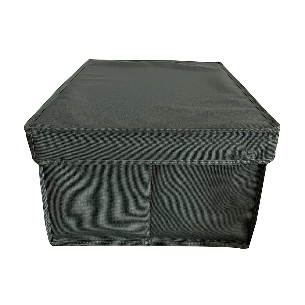 De rechthoekige hoes heeft een grootte van heeft een grootte van 33 cm breed, 48 cm diep en 19 cm hoog. De vacuumzak is 80 cm breed, 60 cm diep en 32 cm hoog.