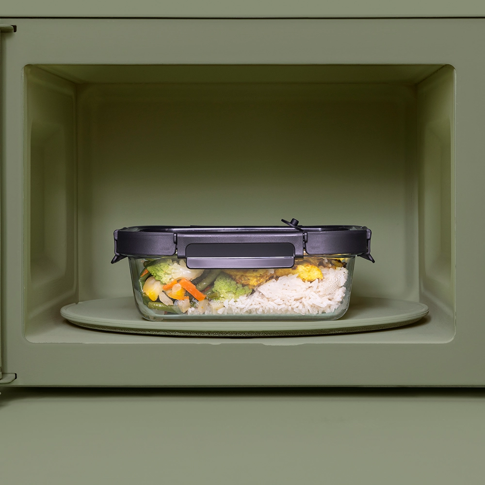 Dankzij de hermetische afsluiting en de waterdichte clipsluiting blijft de inhoud altijd goed beschermd. Dit vershoudbakje van glas is niet alleen stevig en duurzaam, maar ook magnetronbestendig en vaatwasserbestendig. Het deksel is voorzien van een ventilatieventiel, waardoor het bakje ideaal is voor gebruik in de magnetron. Verkrijgbaar in varianten van 500 ml, 900 ml, en 1300 ml, biedt dit bakje voldoende ruimte voor het bewaren van verschillende porties. Daarnaast is het BPA-vrij, wat zorgt voor extra gemoedsrust bij het bewaren en opwarmen van je eten.