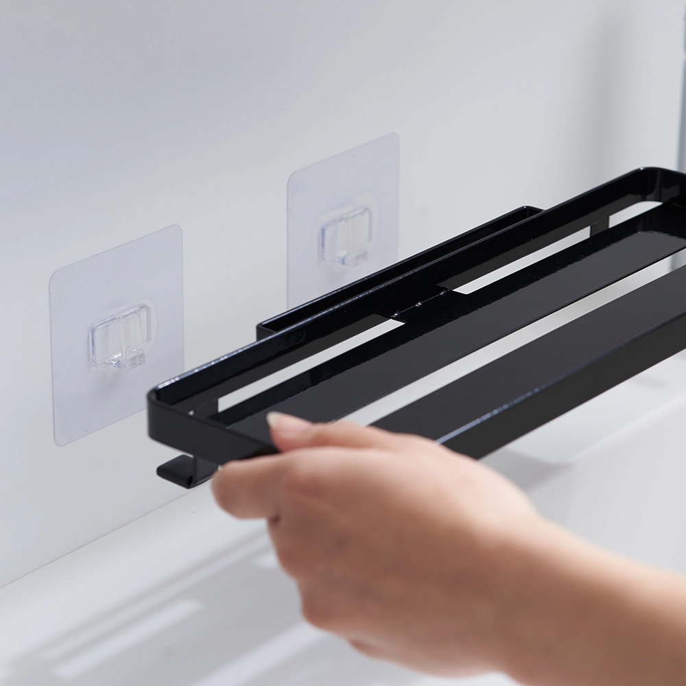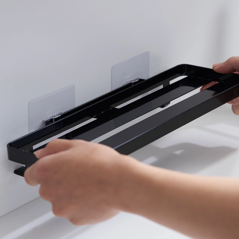 Het installatieproces is eenvoudig: na het schoonmaken van de muur kun je gewoon de bijgeleverde haak op een vlakke wandoppervlakte bevestigen en moeiteloos het plankje eraan klikken. Met zijn minimalistische design voegt dit wandplankje niet alleen functionaliteit toe aan je badkamer, maar ook een vleugje elegantie. Het strakke ontwerp past moeiteloos bij elke interieurstijl en creëert een georganiseerde en opgeruimde uitstraling.