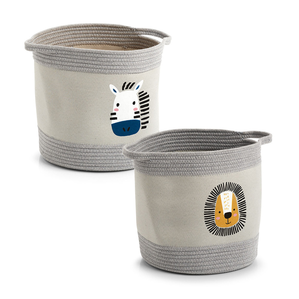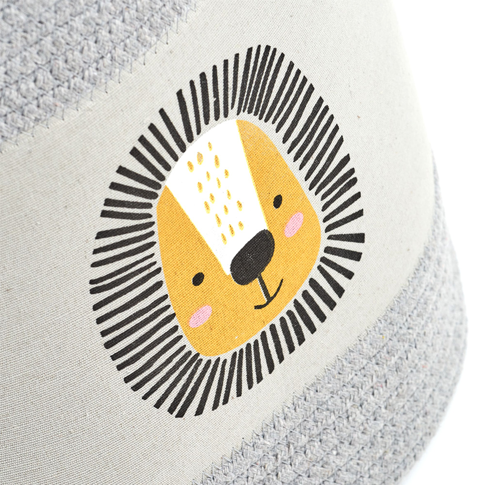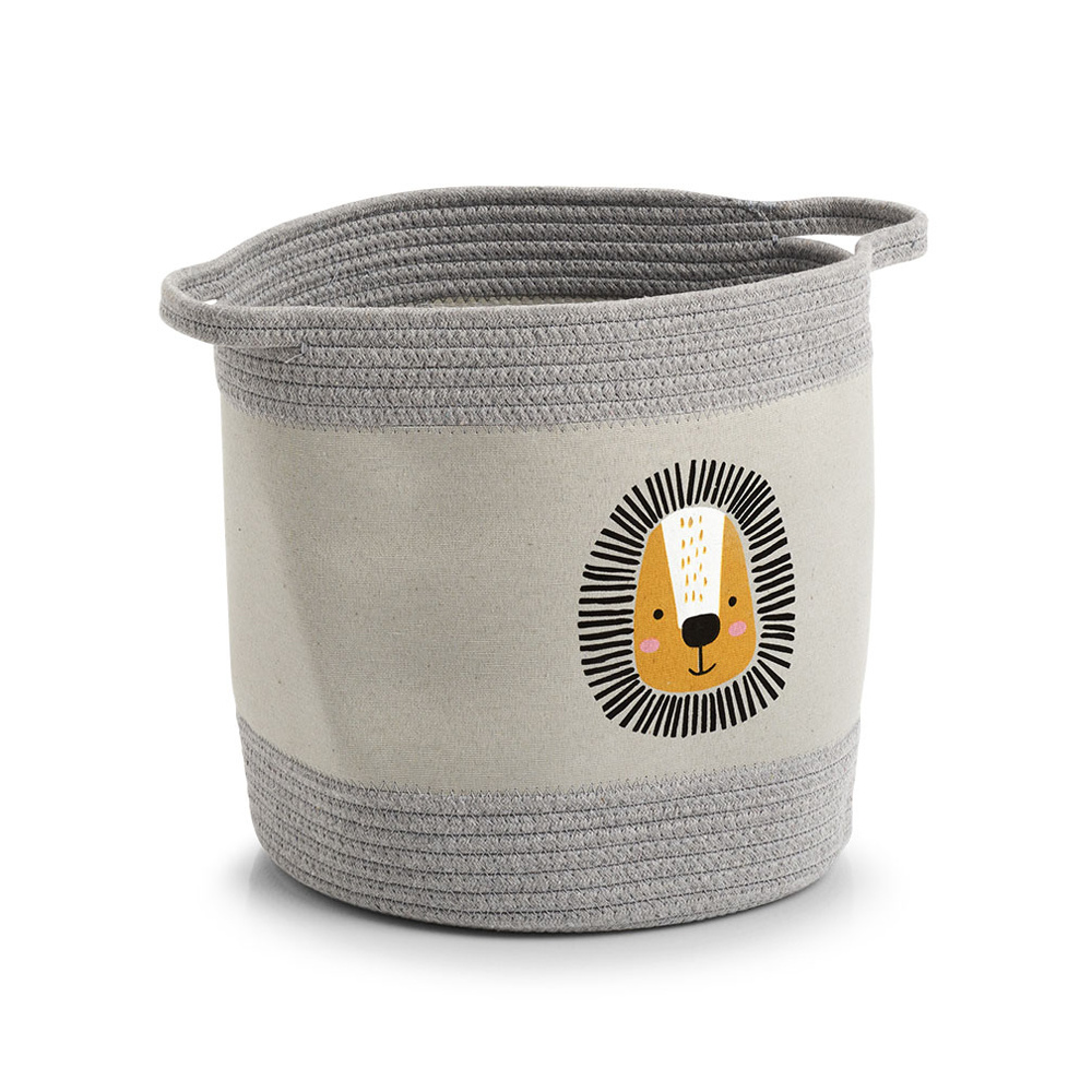 De opbergmand beschikt over twee handige handvatten, waardoor hij gemakkelijk verplaatsbaar is. De wasmand voor de kinderkamer heeft een diameter van 30 cm en is 30 cm hoog. De waszak is verkrijgbaar met een leeuw of zebra opdruk, en gemaakt 90% polyester en 10% katoen. De wasmand is niet wasbaar.