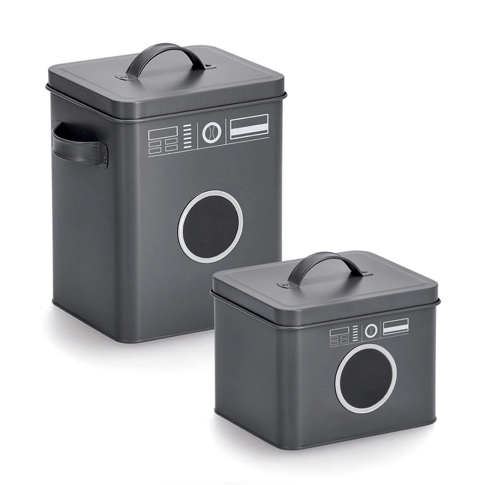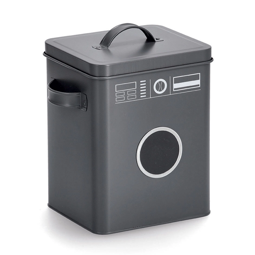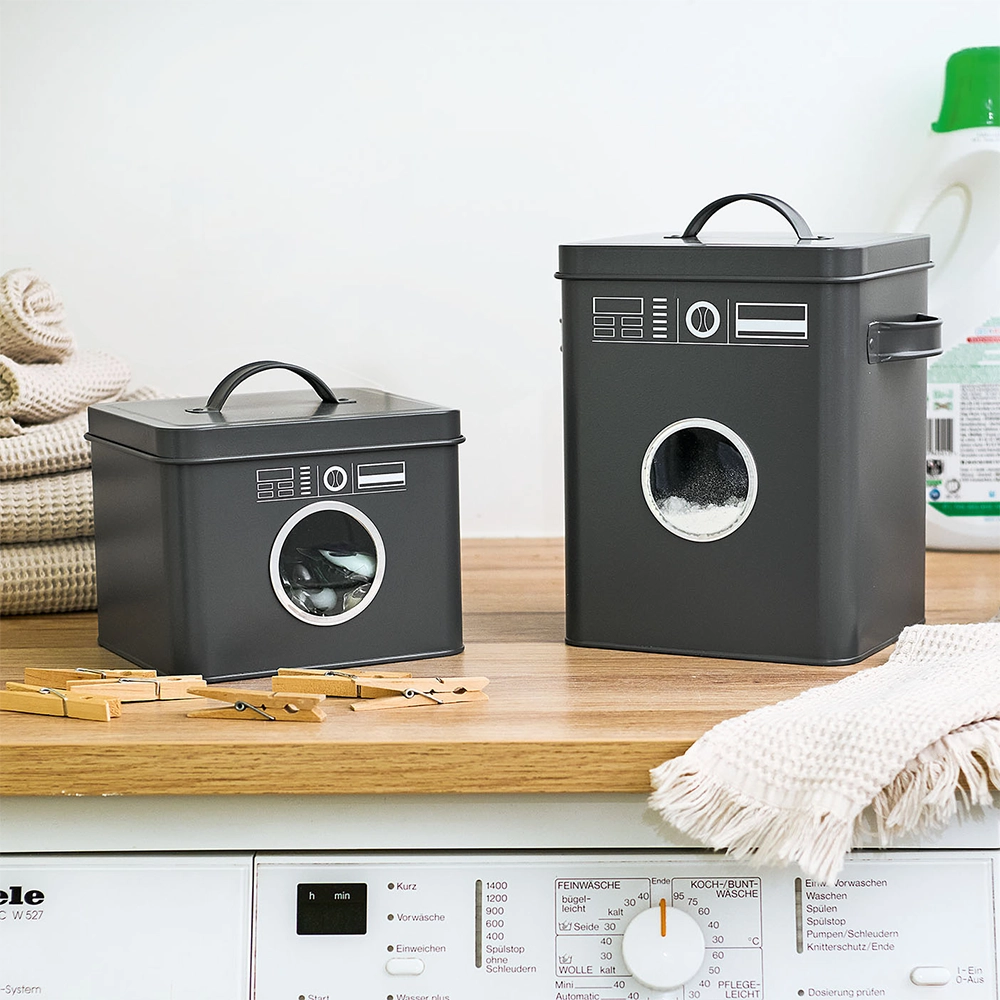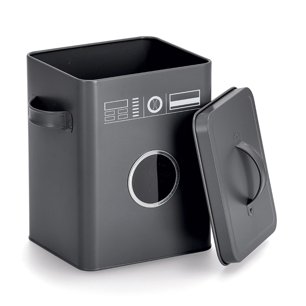 De eigentijdse waspoeder bewaardoos heeft een stijlvolle wasmachinelook en is gemaakt van metaal. Met zijn afmetingen van 18 cm breed, 15,5 cm diep en 23 cm hoog past hij perfect in iedere ruimte of kast. De grijze kleur geeft een moderne uitstraling en het handvat aan de zijkanten en op het deksel zorgt voor extra gemak bij het verplaatsen. De opbergdoos is 18 cm breed, 15,5 cm diep en 23 cm hoog.