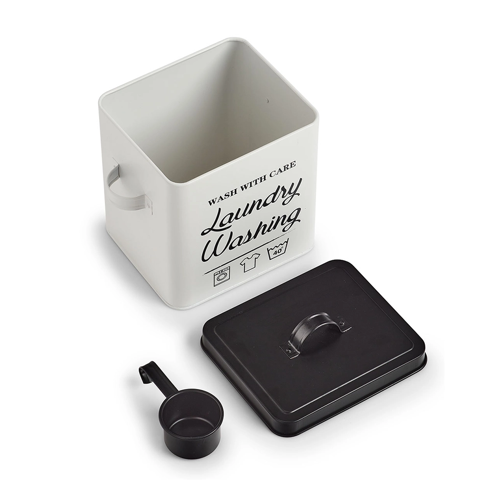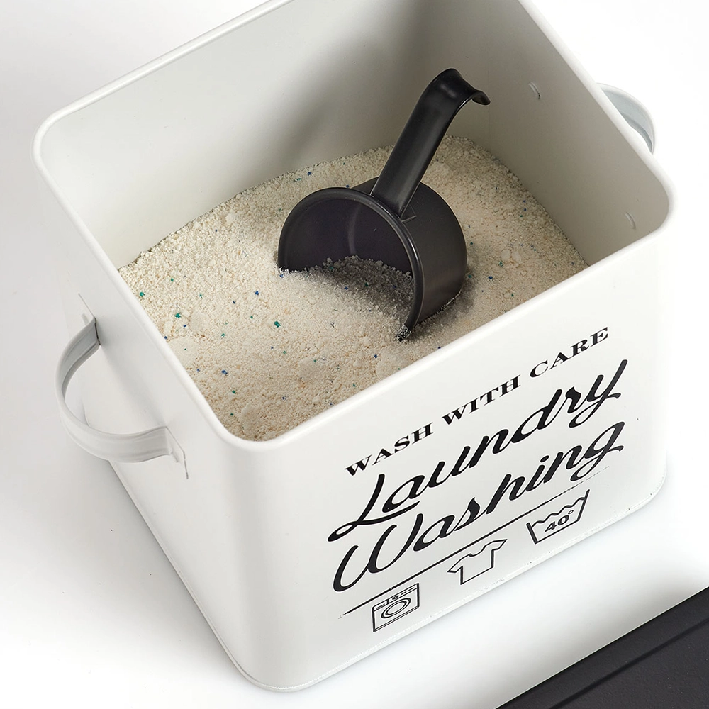 De waspoeder box is gemaakt van ijzer, wat betekent dat hij lang meegaat en bestand is tegen dagelijks gebruik. Het stevige materiaal zorgt ervoor dat je wasmiddel veilig wordt bewaard en beschermd tegen vocht en stof. Daarnaast heeft de box een praktisch hengsel wat ook als ophangfunctie kan dienen, zodat je hem gemakkelijk kunt opbergen of ophangen aan een muurhaakje.