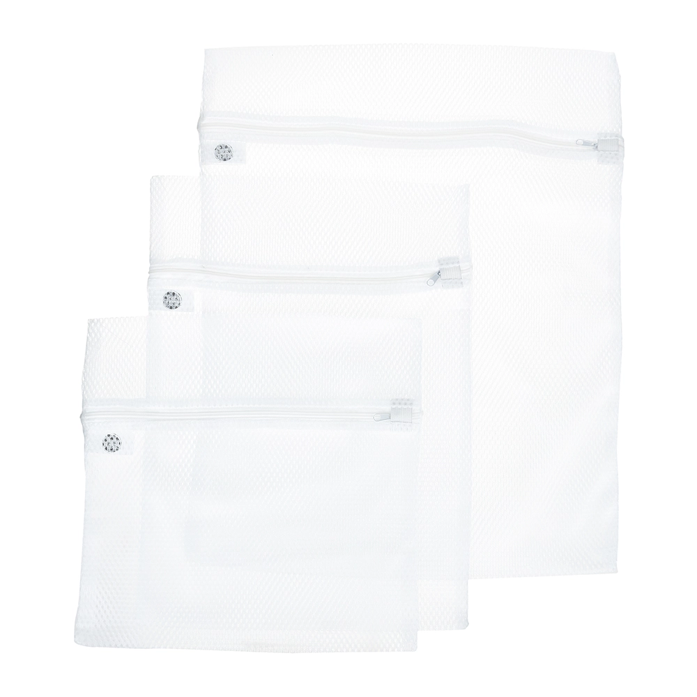 Dankzij de ritssluiting blijven je kledingstukken goed op hun plek en worden ze grondig gereinigd zonder risico op slijtage. De 3-delige waszak set bevat waszakken in verschillende formaten, zodat je voor elk type kledingstuk de juiste maat hebt. Of je nu kleine items zoals sokken of grotere stukken zoals truien of jurken wilt beschermen, deze set biedt de juiste oplossing. Gemaakt van polyester, zijn de waszakken sterk en bestand tegen intensief gebruik, terwijl ze toch zacht zijn voor je kleding. De set bestaat uit wasnetjes met de volgende formaten: