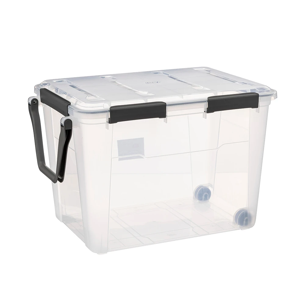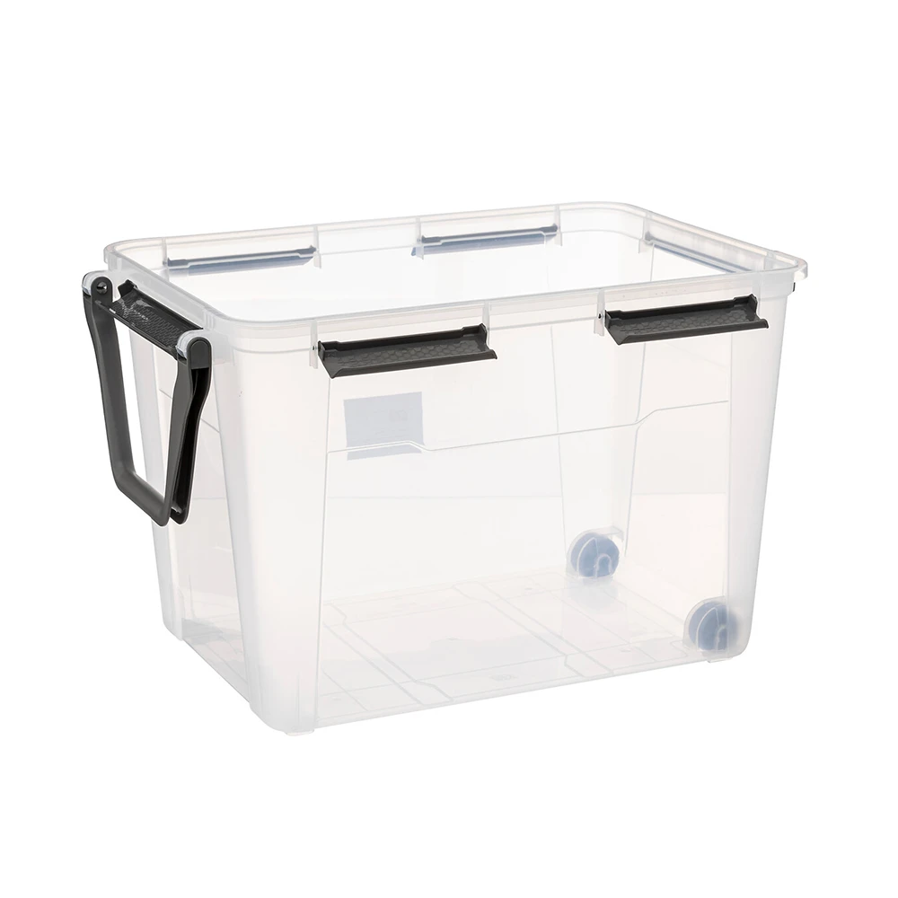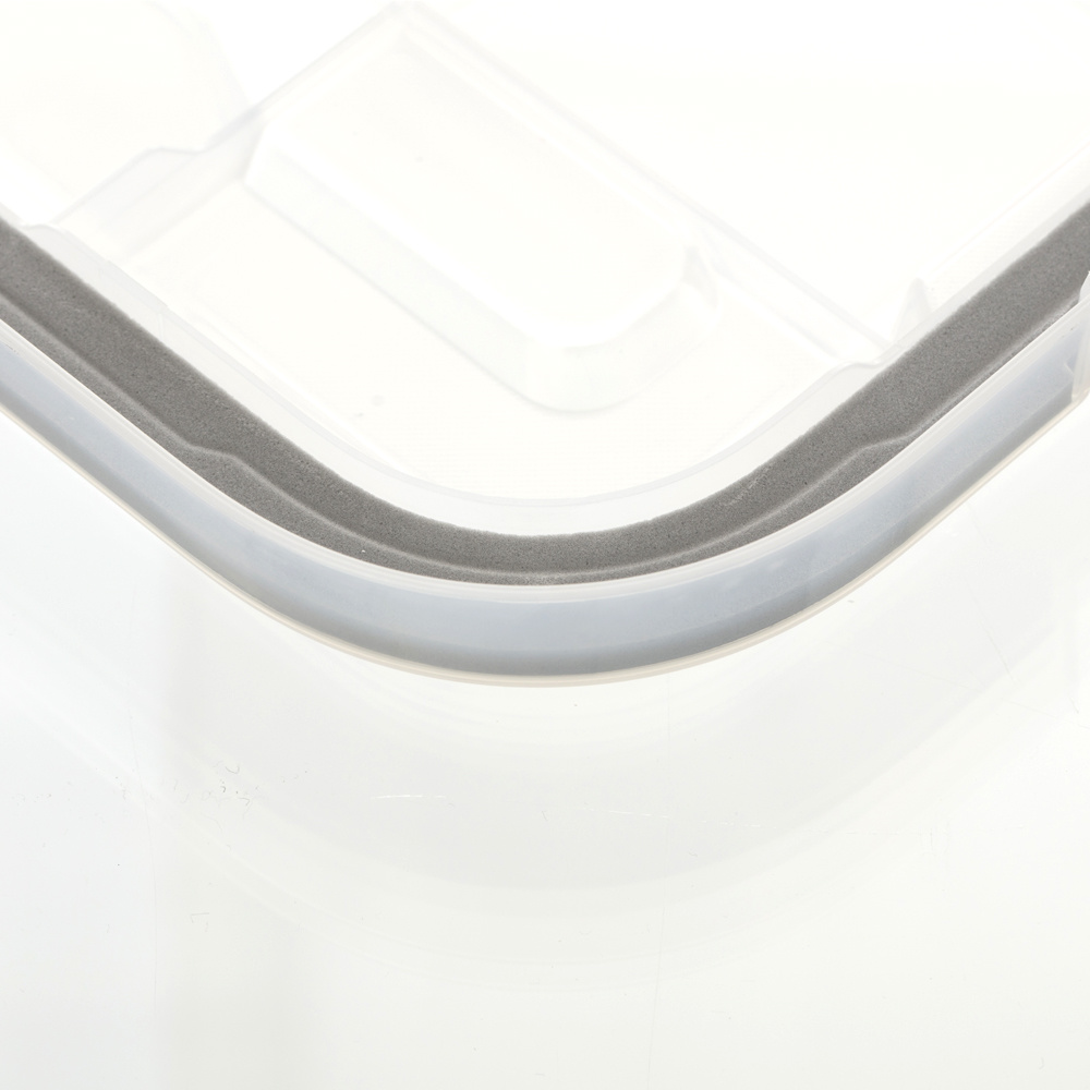 De waterdichte opbergbox is transparant en heeft een goed afsluitbaar deksel die met vier sterkte clipsluitingen dicht te maken is. Zonder deksel zijn de boxen nestbaar.