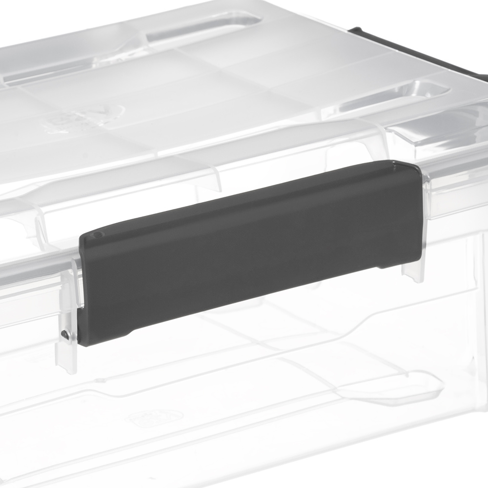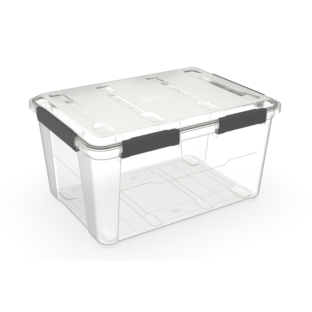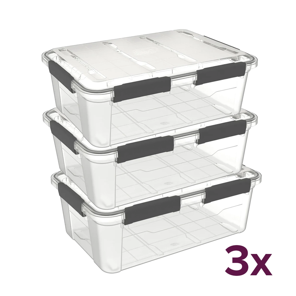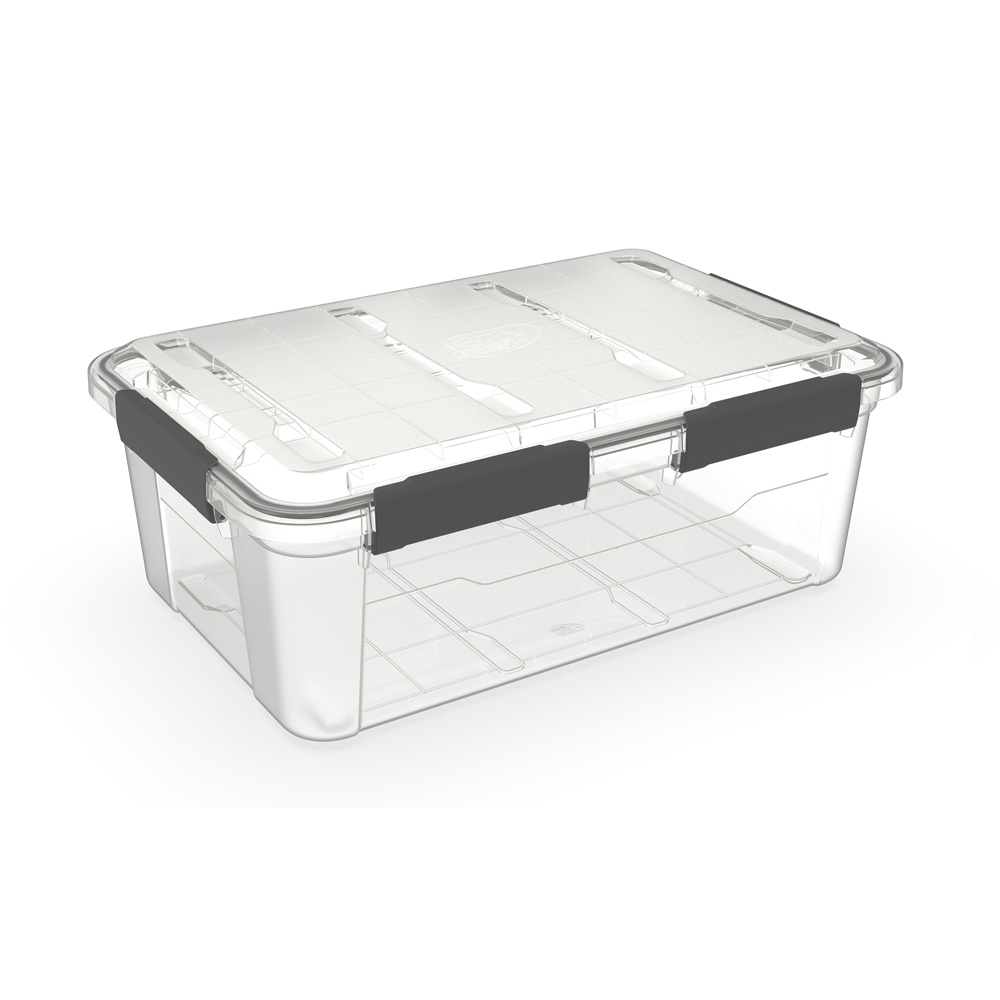 De waterdichte opbergbox is transparant en heeft een goed afsluitbaar deksel die met vier sterkte clipsluitingen dicht te maken is. Zonder deksel zijn de boxen nestbaar.
