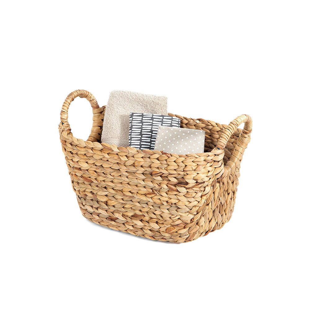 Natuurlijke waterhyacint manden met handvatten aan twee kanten. Gemaakt van duurzaam materiaal en verkrijgbaar in maar liefst vijf maten waarmee je goed kunt combineren.