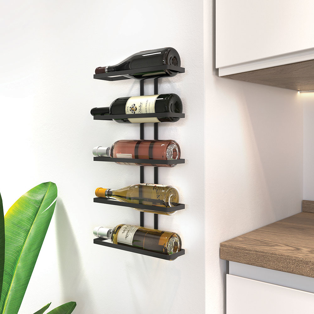 Ruimte besparen in je keuken? Hang maximaal 5 wijnflessen op met dit wijnrek van Tomado Metaltex. Dit wijnrek wordt geleverd met muurbevestiging waardoor jouw favoriete wijnflessen altijd goed in het zicht hangen. Zo zie je in één oogopslag welke flessen je nog in huis hebt. Voorzien van een speciale coating die beschermd tegen corrosie en krassen. Ook bruikbaar voor andere flessen van vergelijkbaar formaat.