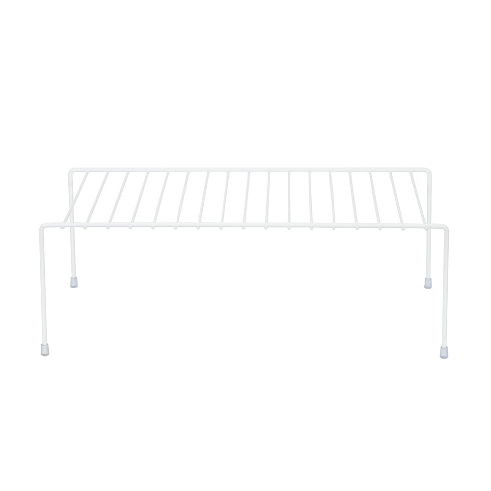 Het keukenkast rekje is gemaakt van metaal en heeft een witte coating. Hierdoor staat het goed in elk keukenkastje. De pootjes hebben een anti-kras dopje waarmee niet alleen krassen worden voorkomen maar welke ook het schuiven tegenhouden. In totaal is de organizer 42,5 cm breed, 22,5 cm diep en 14,5 cm hoog.