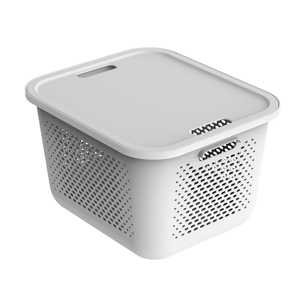 Deze collectie is speciaal ontworpen om extra ruimte te creëren en je huis georganiseerd te houden. Met de handige geïntegreerde uitgesneden handgrepen kun je deze manden moeiteloos in en uit rekken of kasten pakken. En wanneer je ze niet gebruikt, kunnen de verschillende maten gemakkelijk in elkaar genesteld worden. Bovendien zijn de bakken stapelbaar met het deksel erop, waardoor je nog meer ruimte kunt besparen. Deze kunststof manden zijn perfect voor het opbergen van allerlei spullen, van speelgoed en boeken tot dekens en kleding. Ook kunnen ze gebruikt worden voor het organiseren van kantoor- en knutselspullen. Gemaakt van hoogwaardig en zeer stevig wit kunststof, met een bijpassend wit of houten deksel voor een opgeruimde uitstraling. De manden zijn er in 3 formaten: