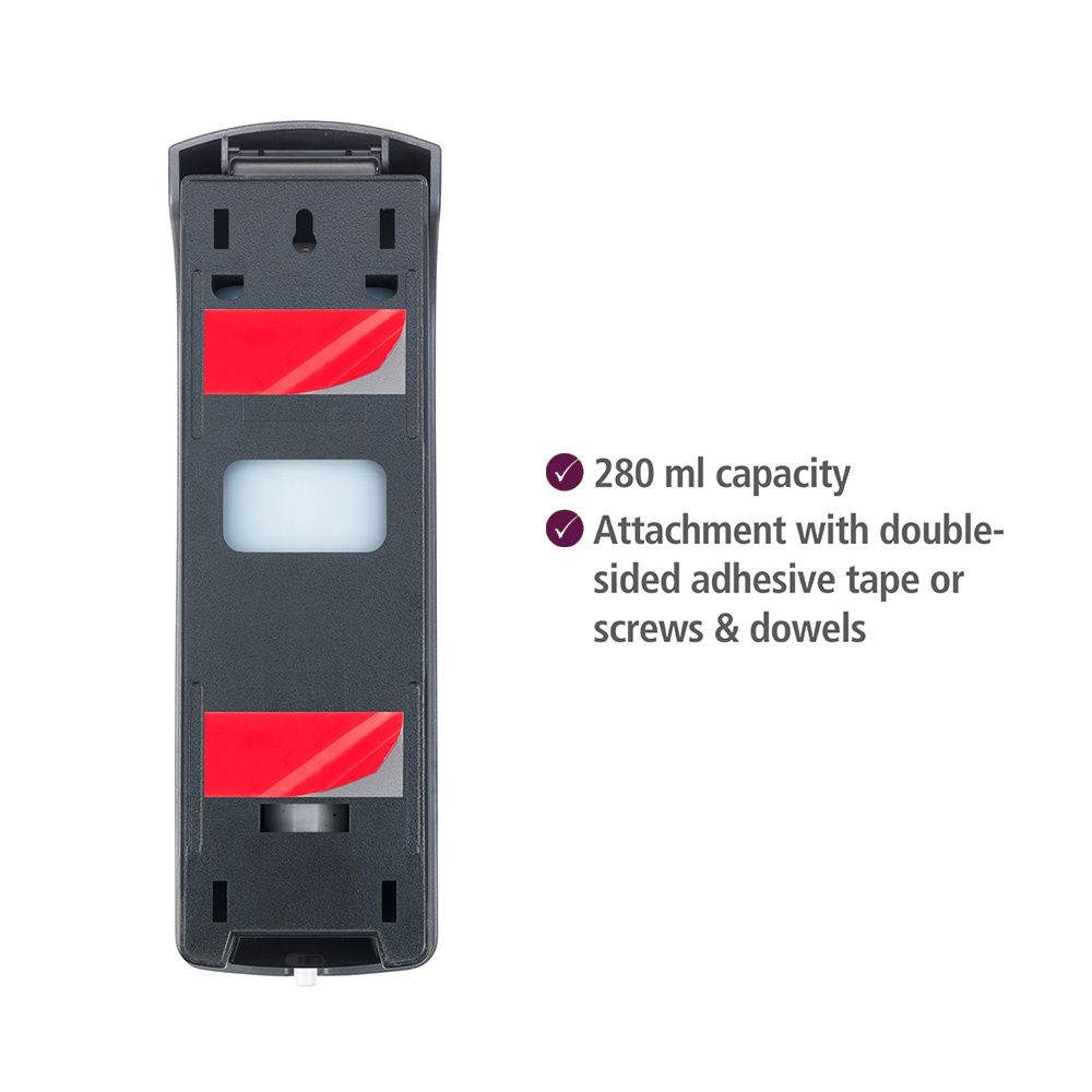 Deze zeeppomp voor aan de muur is verkrijgbaar het zilver, is 7 cm breed, 7,5 cm diep en 22 cm hoog. De zeeppomp houder voor aan de muur is op diverse manieren te monteren. Je kunt de organizer vastschroeven met de meegeleverde schroeven en pluggen of met het dubbelzijdige plakband vastplakken. In totaal kun je 280 ml zeep, douchegel of handgel kwijt in de zeepdispenser voor de douche.