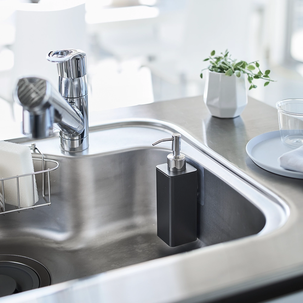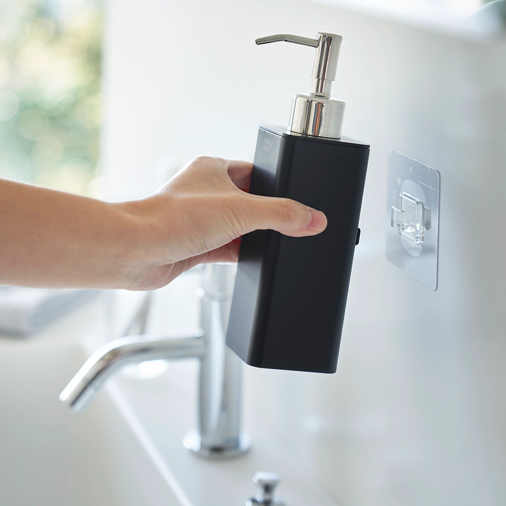 Het hangende zeeppompje van Yamazaki is een minimalistische en handige toevoeging aan jouw wastafel of badkamer. Met de bijgeleverde plakhaak is de dispenser eenvoudig aan de muur te bevestigen, waardoor je ruimte bespaart op het oppervlak.