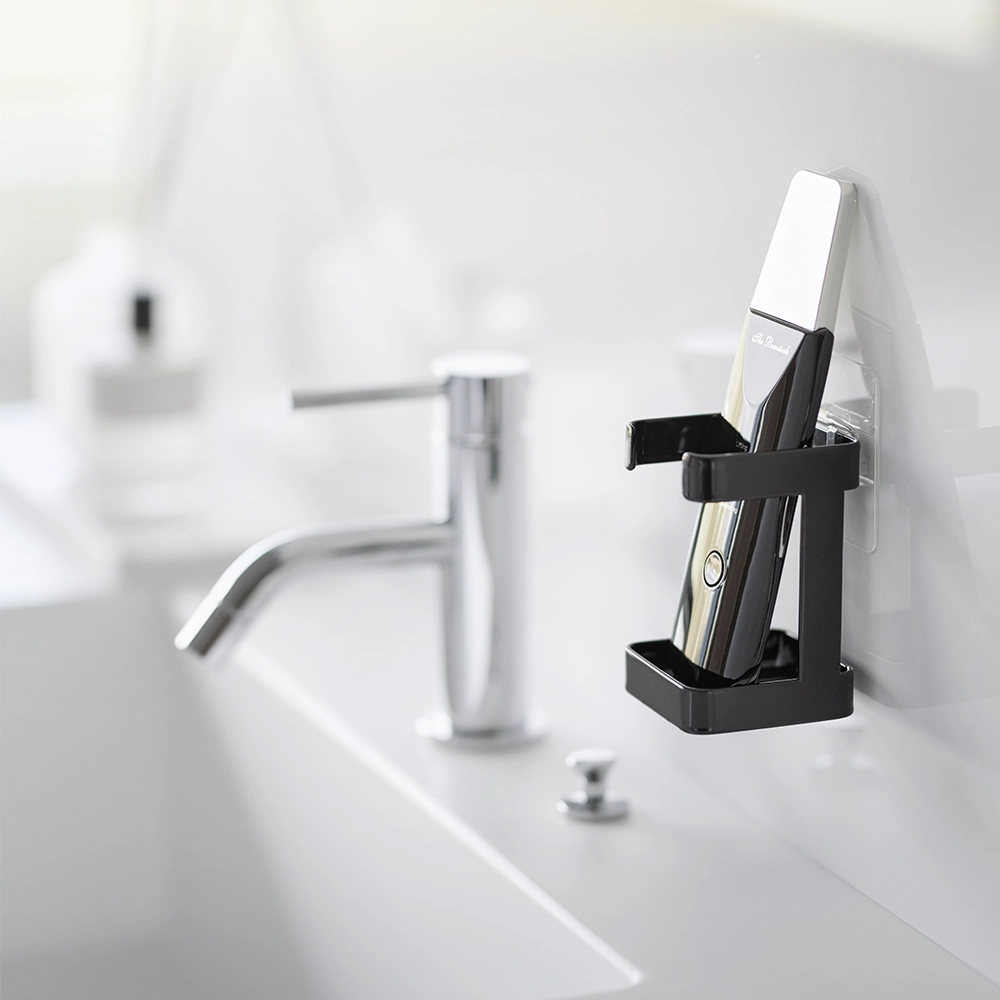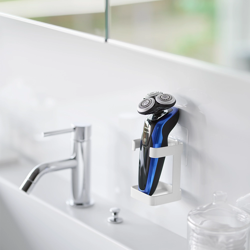 De zelfklevende apparatenhouder van Yamazaki is een must-have voor iedereen die zijn badkamer georganiseerd wil houden. Het eenvoudige bevestigingssysteem met de filmhaak maakt installatie snel en moeiteloos, terwijl het elegante witte design naadloos in elk interieur past. Perfect voor het scheerapparaat opbergen of andere kleine apparaten, deze houder is zowel praktisch als stijlvol.