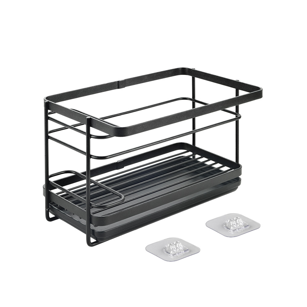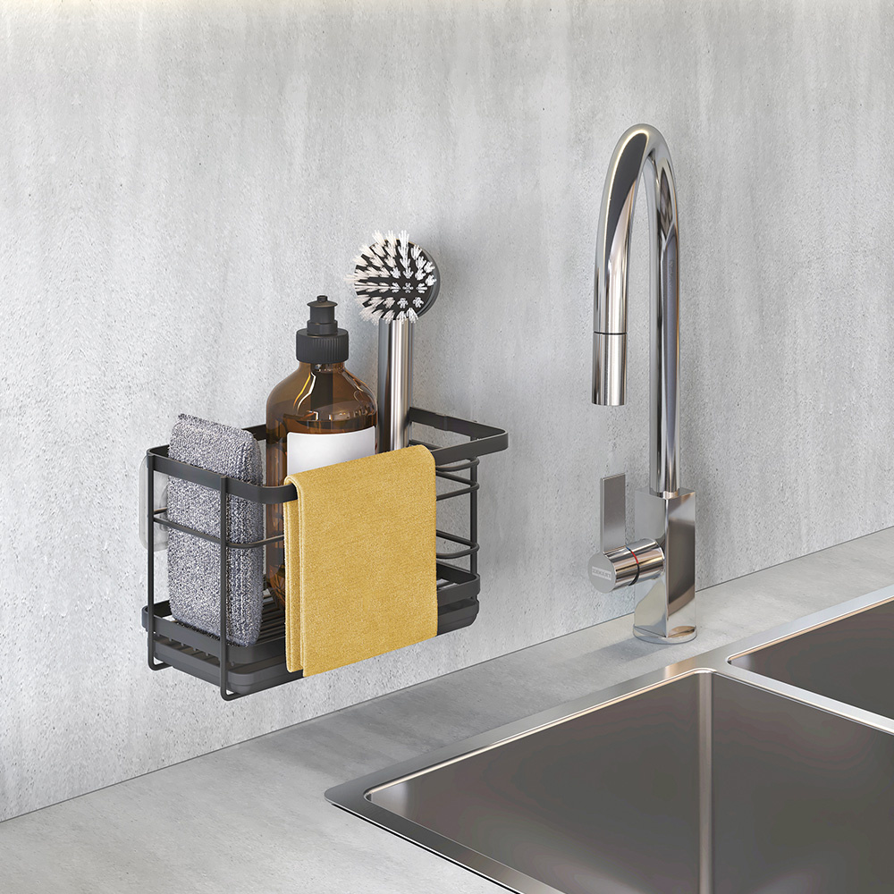 Dit zwarte gootsteen bakje kan gemakkelijk zonder te boren opgehangen worden. Ideaal voor het opbergen van afwas accessoires, zoals afwasborstels, vaatdoeken, en sponzen.