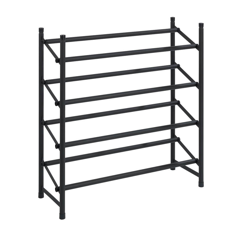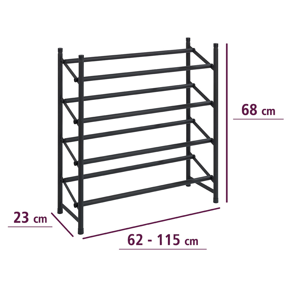 Zwart uitschuifbaar schoenenrek 4 niveaus Wenko | stapelbaar