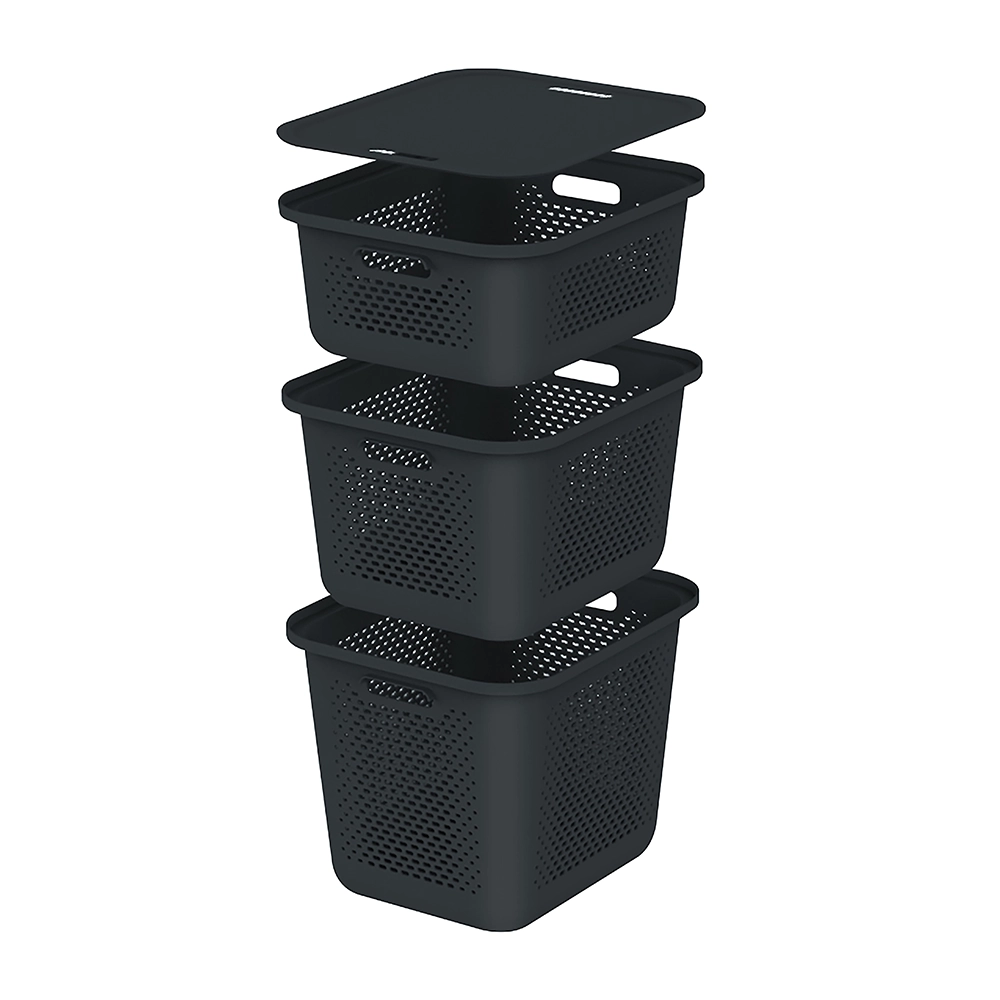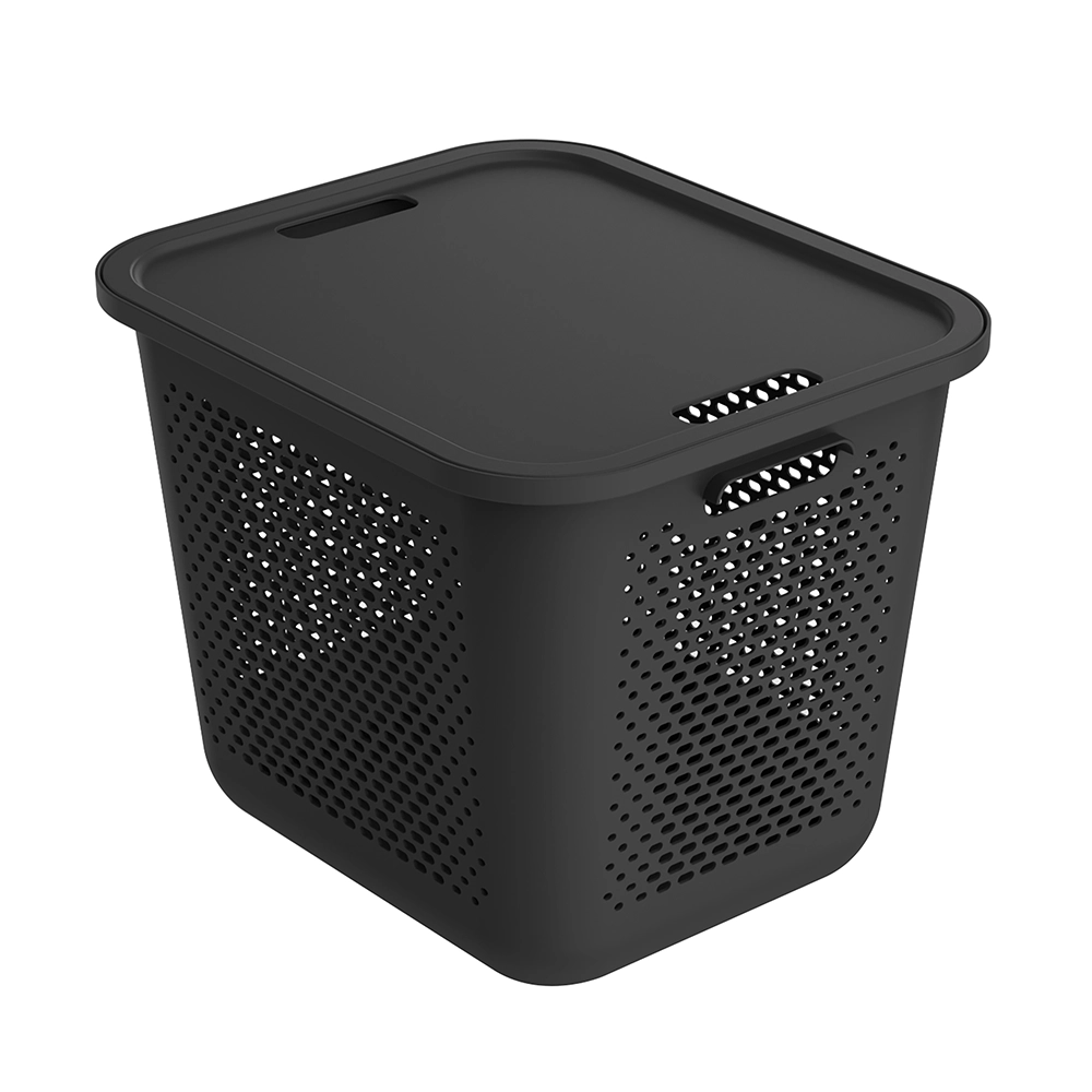 Deze kunststof mand is perfect voor het opbergen van allerlei spullen, van speelgoed en boeken tot dekens en kleding. Ook je kantoor- en knutselspullen vinden hierin gemakkelijk een plekje. Het hoogwaardige en stevige zwarte kunststof zorgt ervoor dat deze mand lang meegaat, terwijl het zwarte of houten deksel zorgt voor een opgeruimde uitstraling.Haal de kunststof manden van Ezystorage in huis en geniet van een georganiseerde leefomgeving, ze zijn eventueel ook te combineren met andere kleuren uit de Kobai collectie.