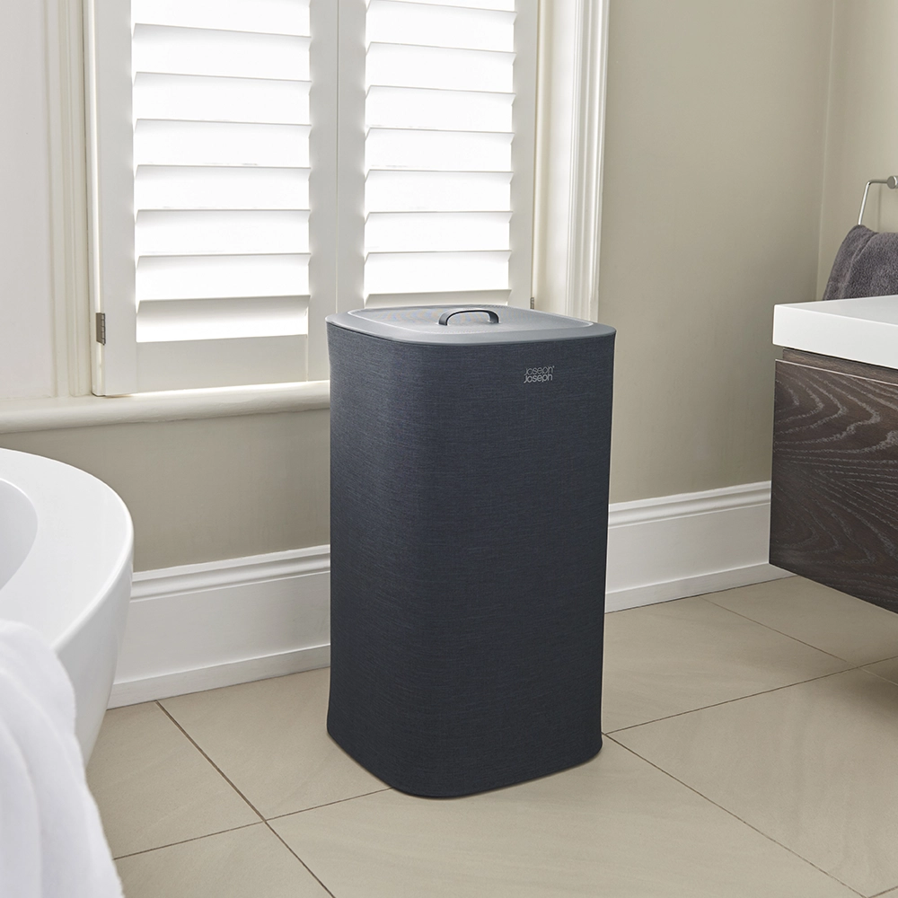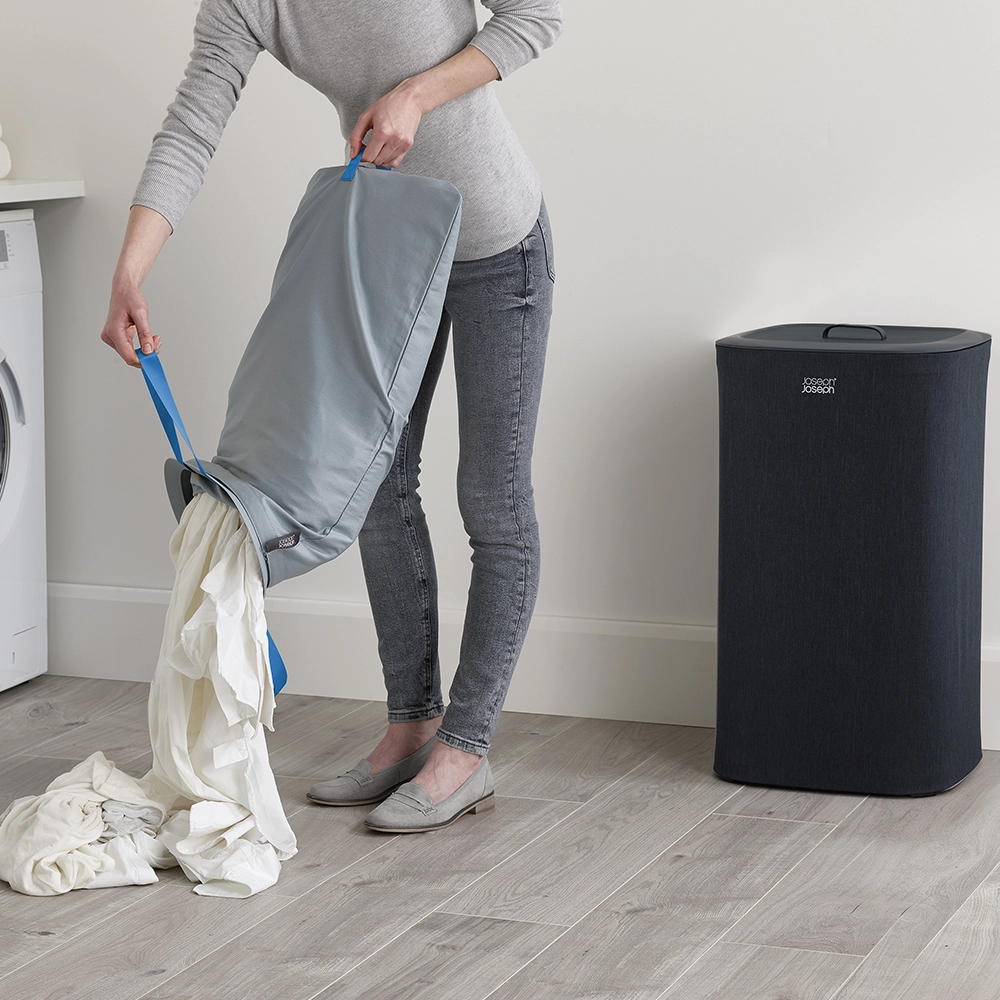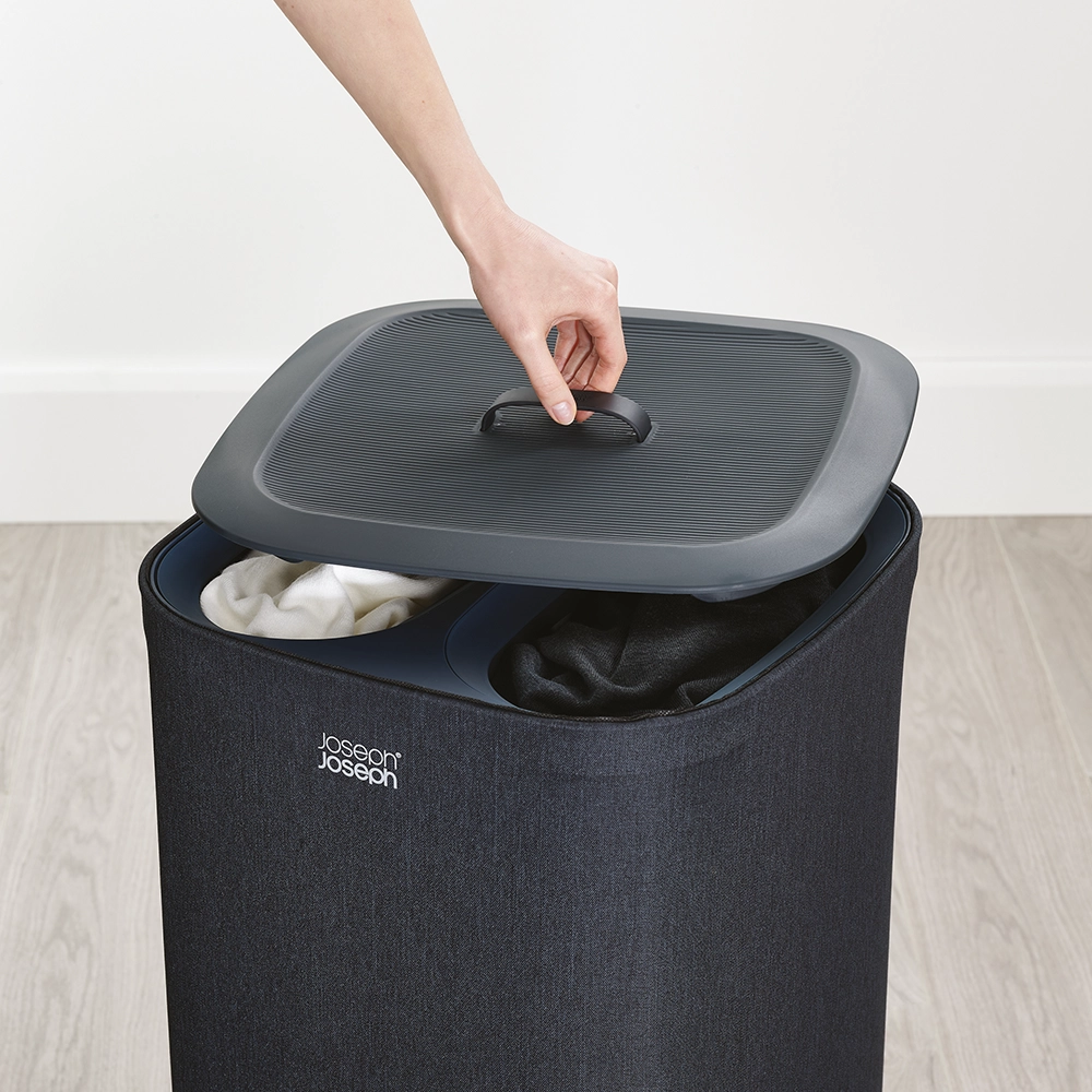 Zoek je een stijlvolle oplossing voor het sorteren van je wasgoed? De slimme Tota zwarte wasmand van Joseph Joseph combineert elegantie met functionaliteit, ideaal voor het eenvoudig en geordend scheiden van je wasgoed.